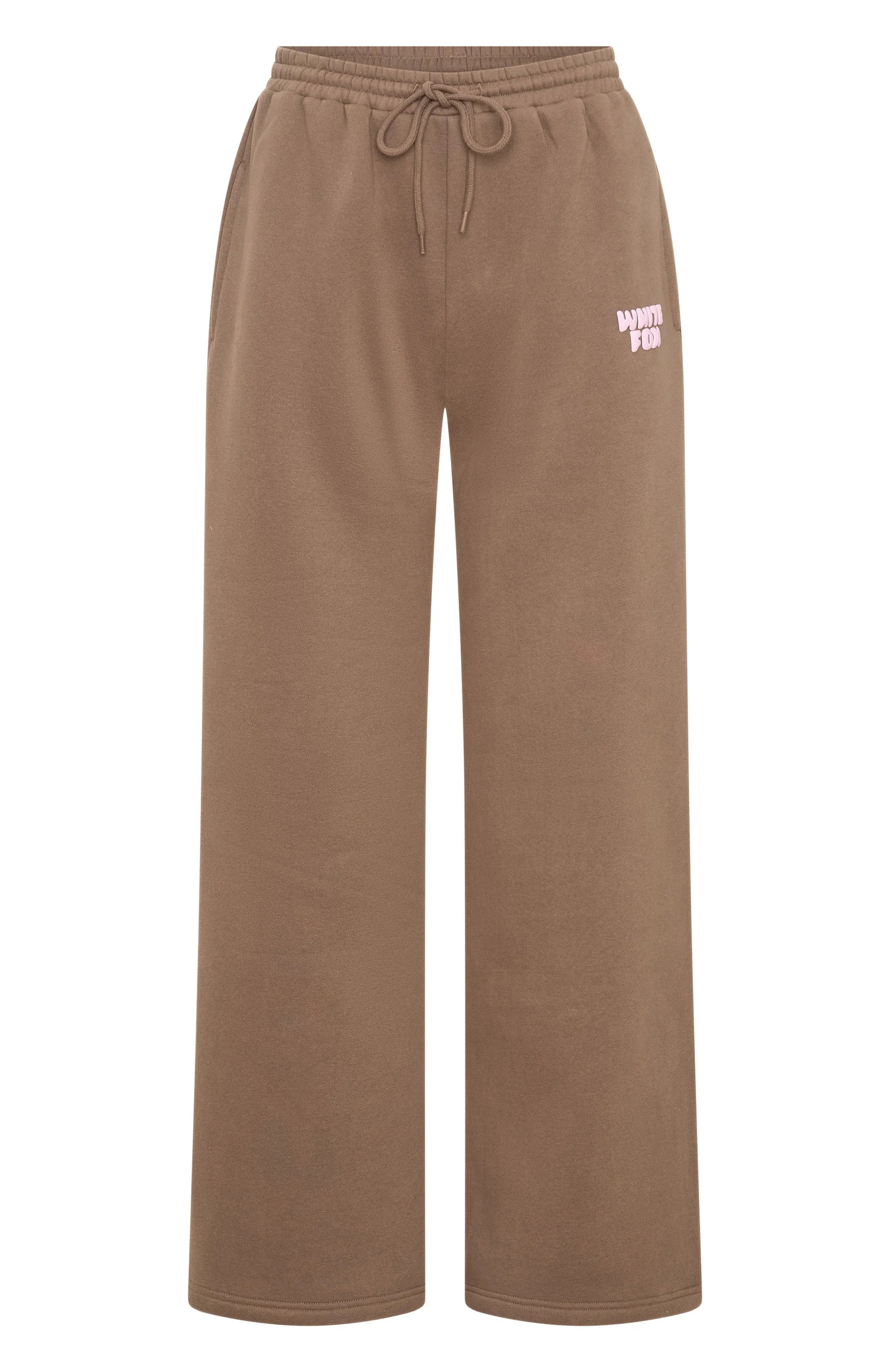 The 11th Street City Girl At Heart Wide Leg Sweatpants Cinnamon Bun features a high elasticated drawstring waistband, elasticated ankles, side pockets, soft fleece fabric for extra comfort and logo detailing on side of leg. Style with the matching 11th Street City Girl At Heart Oversized Hoodie Cinnamon Bun for the full vibe!