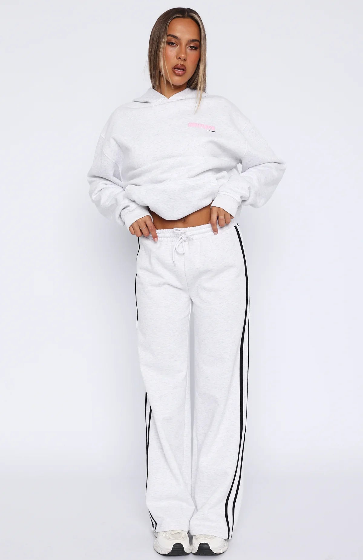 Get that effortlessly chilled vibe in the 11th Street Out & About Wide Leg Sweatpants Glaze. Features a thick elasticated waistband, logo detailing on side leg, high rise fit and straight leg, flare design. Team with one of our 11th Street tees for a chill weekend look.