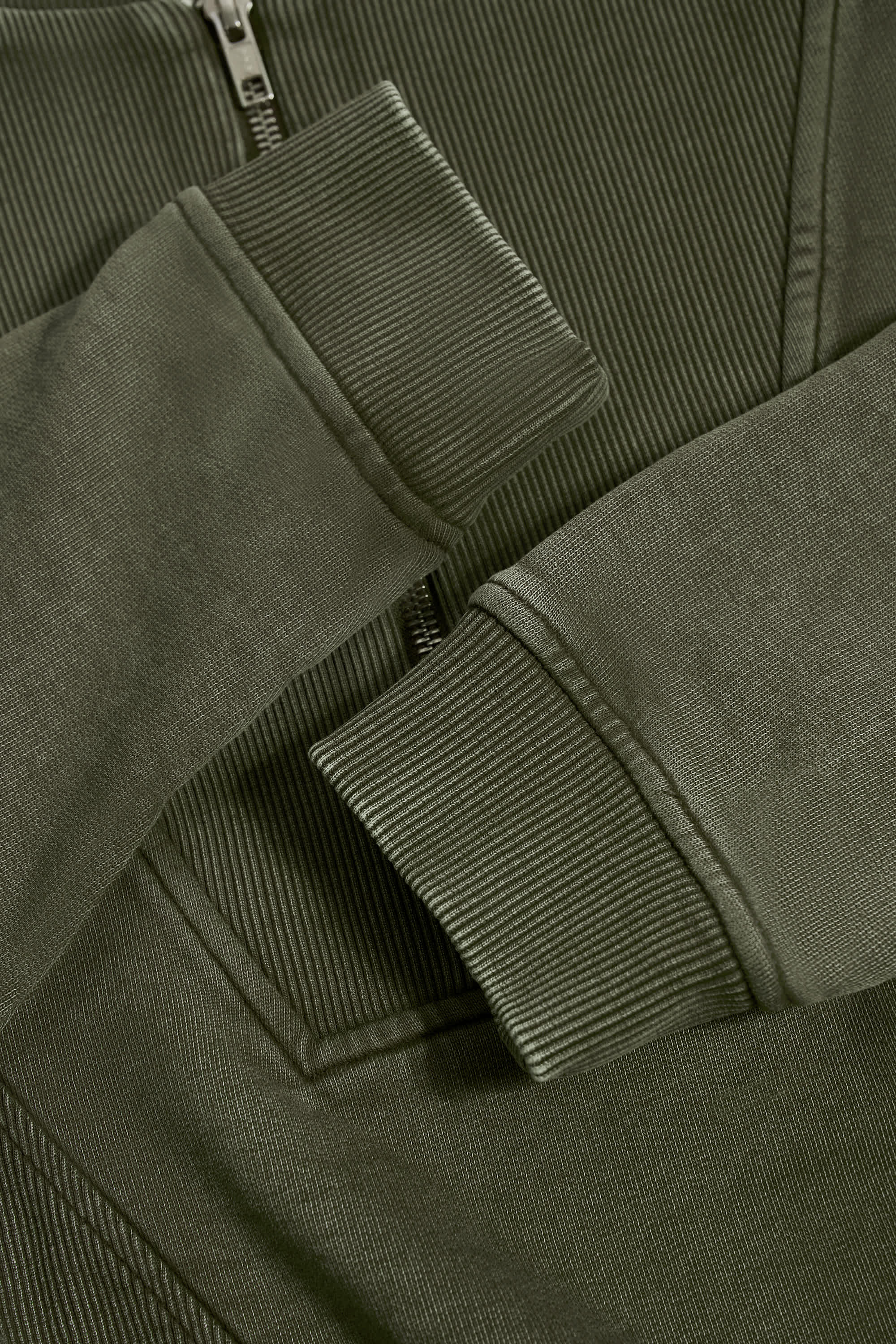 Rooted in comfort, built for movement. The perfect lightweight layer, this sweatshirt is crafted from naturally breathable cotton jersey with a lived-in acid wash effect and cut to a cropped silhouette with a ribbed panelled design that accentuates the perfectly oversized fit. It’s elevated with an embroidered logo and functional half-zip fastening for customisable coverage.