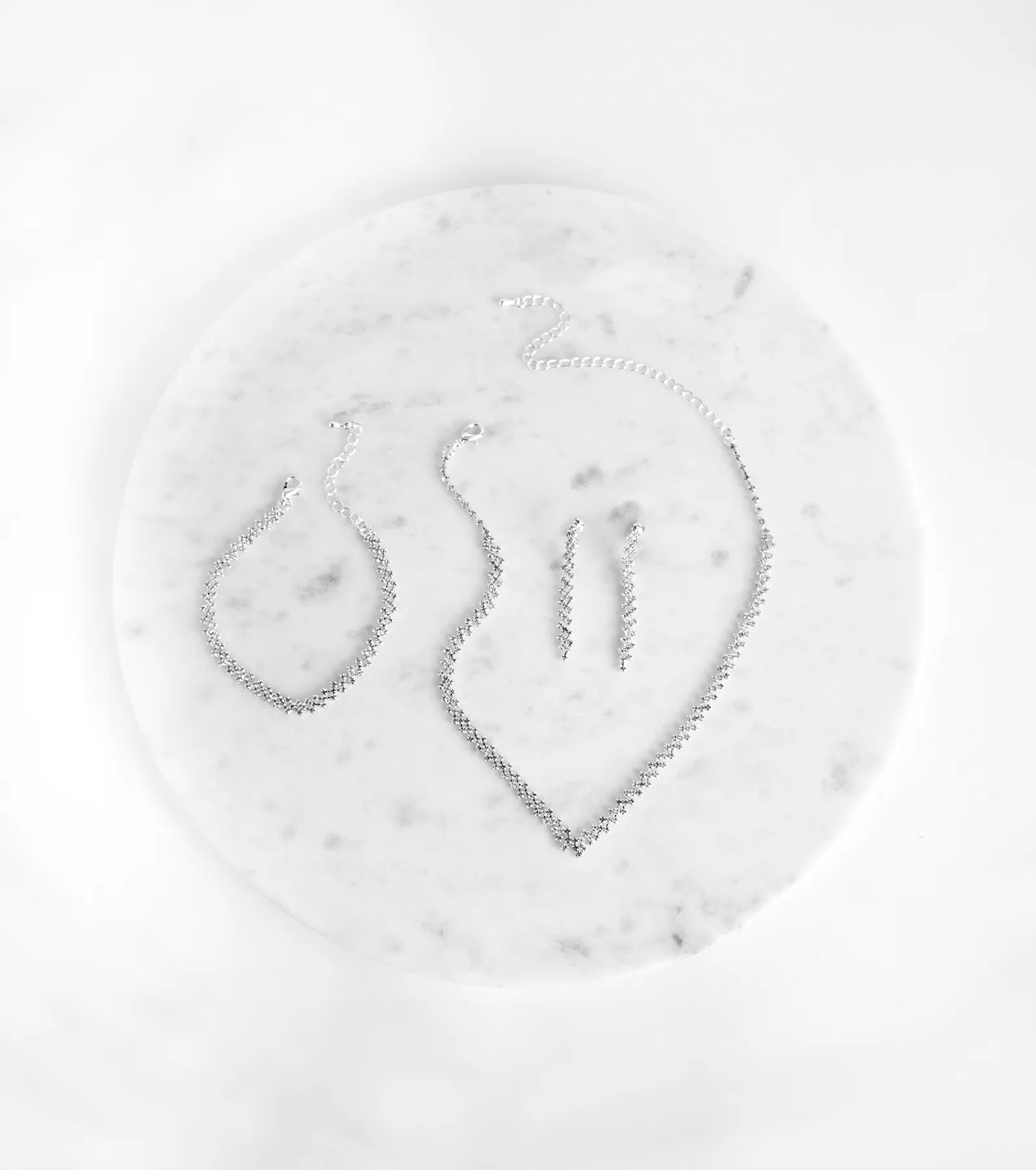 This matching necklace and earrings set is the easiest and most elegant way to finish your look. Featuring a rhinestone necklace, duster earrings, and bracelet, you'll look on point. The necklace and bracelet each come with a lobster clasp closure for easy wear. With this set, you'll be ready for your next fancy dinner with bae! Pair with a and and shine on babe.