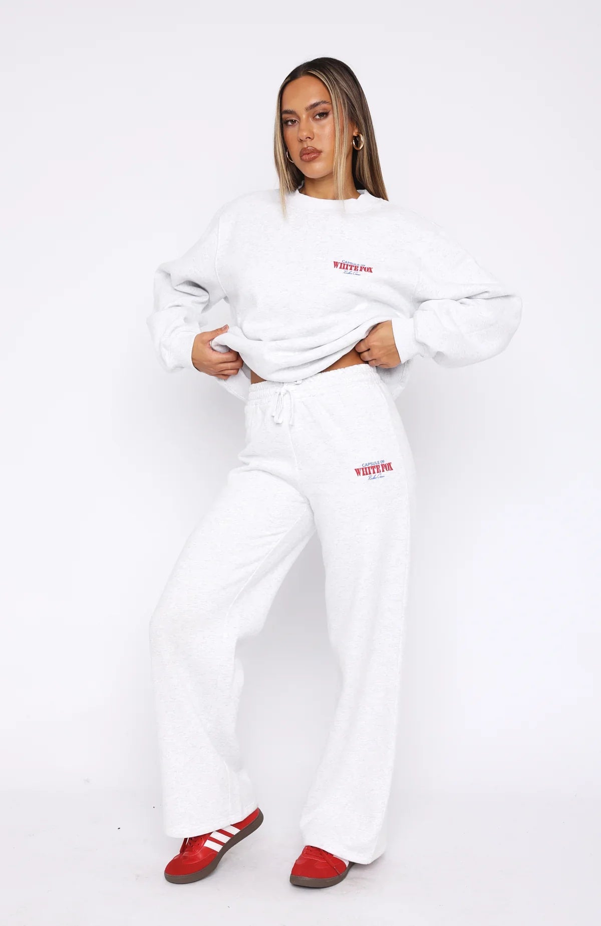 Turn up the heat this winter season in the Capsule 9 Rodeo Crew Wide Leg Sweatpants Grey Marle. Features a thick elasticated waistband, lining, high rise fit and straight leg design. Pair with the matching Capsule 9 Rodeo Crew Oversized Sweater!