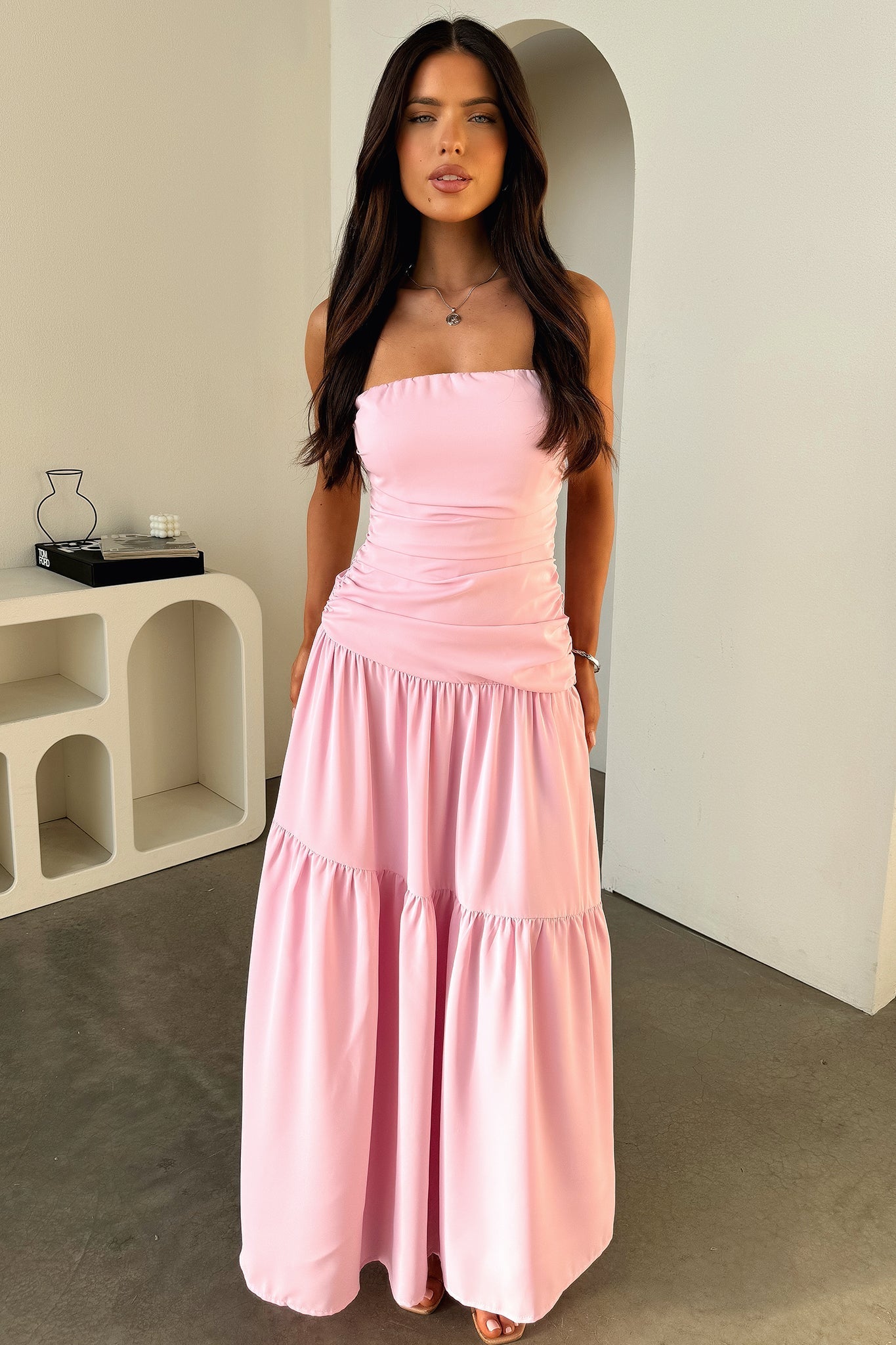 Unleash your inner beach goddess in the Charlotte Maxi Dress. The strapless design and stretchy bust with silicone tape offer a comfortable and secure fit, while the double lining and flowy skirt add a touch of elegance. With ruching down the sides, this dress is both flattering and versatile - perfect for any holiday adventure. Just add sandals and a cute bag for a stylish look!