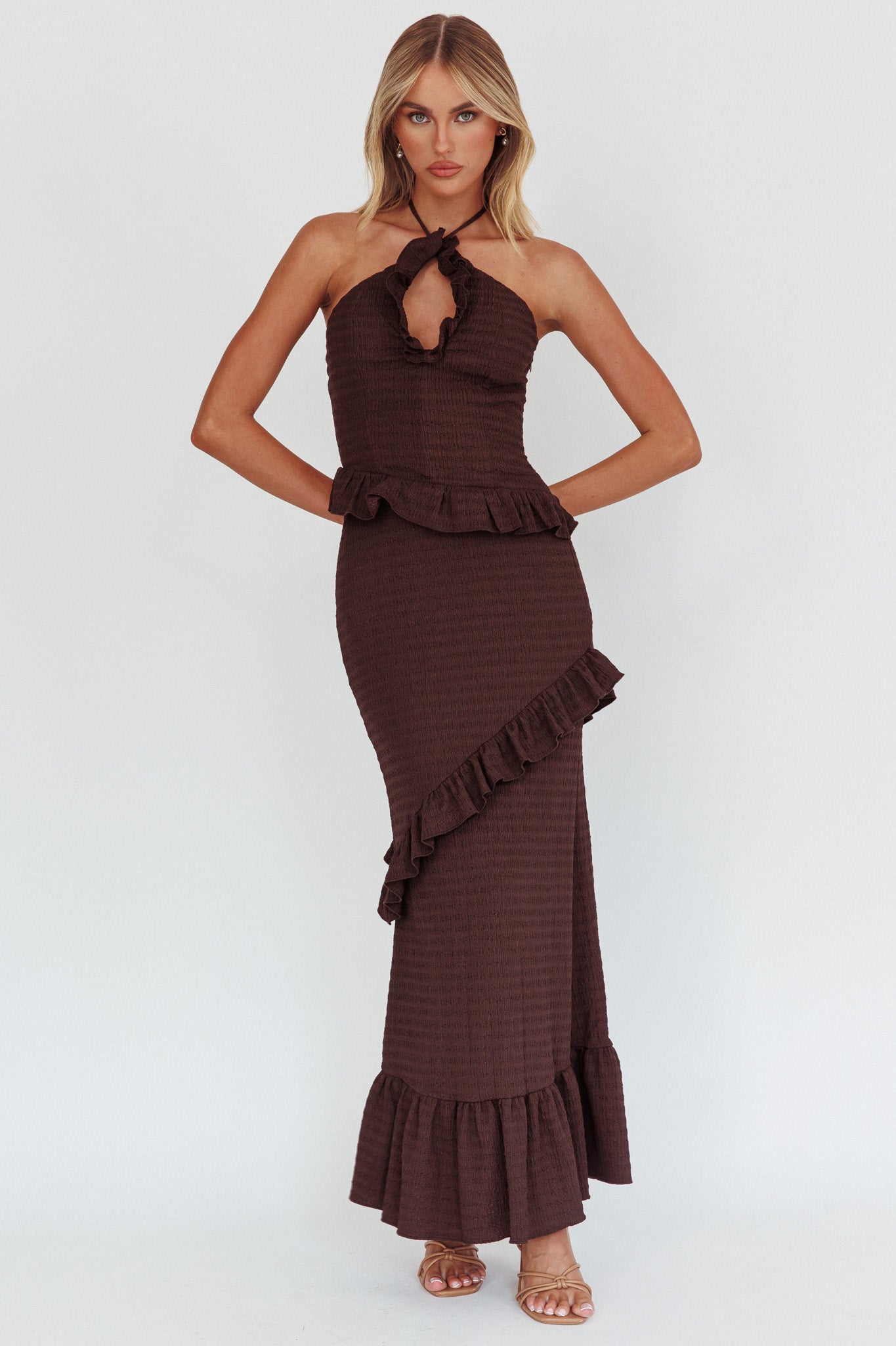You will feel like a goddess in our stunning Clemence maxi dress. We are in love with its figure-hugging fabric and frill trim. Perfect for a wedding or special birthday soiree! Team it with strappy, nude heels and a clutch for an unforgettable look.