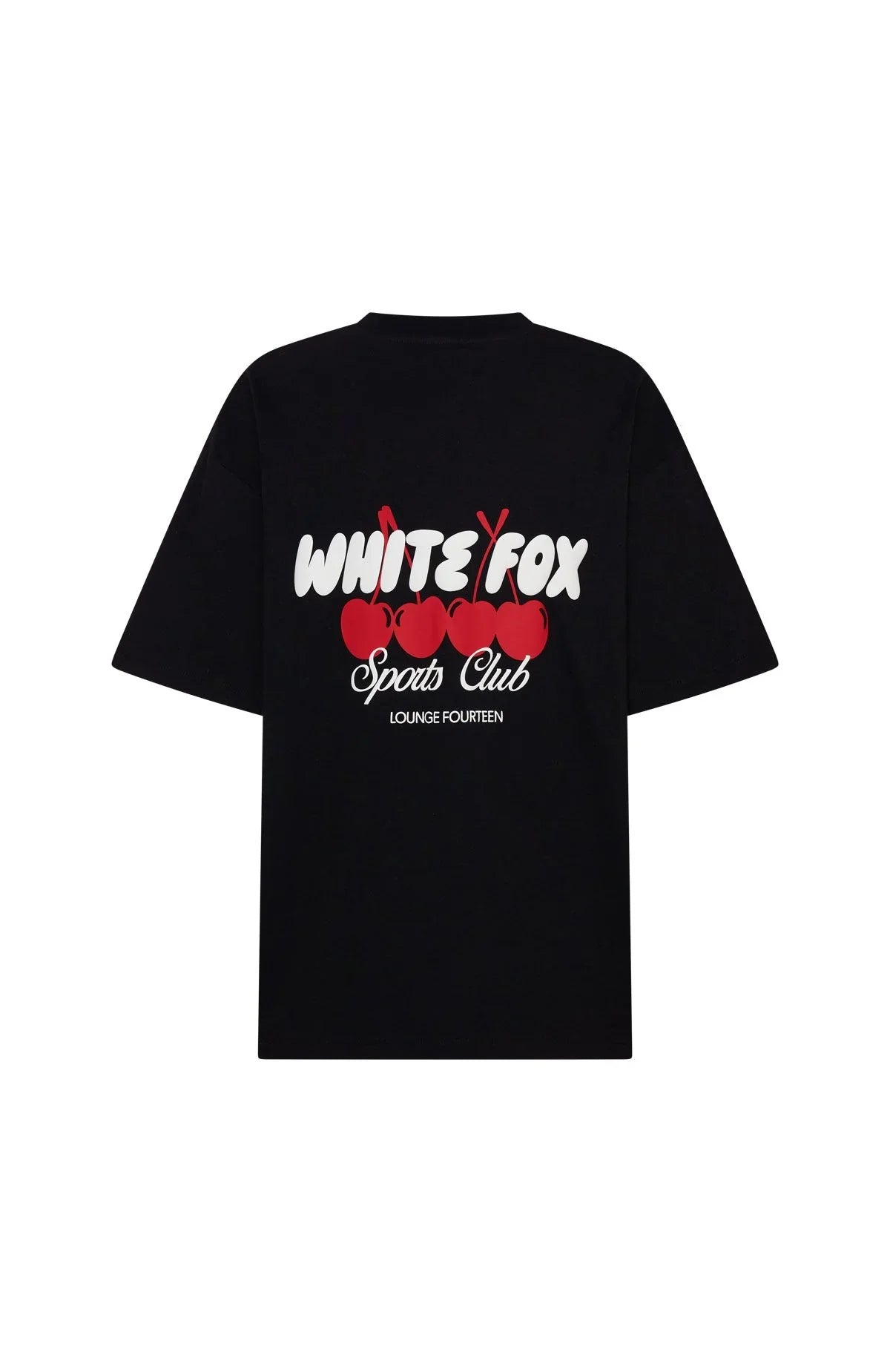 Today's uniform! The Club 14 Cassie Oversized Tee Black features a classic crew neckline, relaxed slouched shoulders, breezy short sleeves and oversized silhouette. Finished off with a White Fox puff-print text at the front and back, layered over a cherry graphic for a standout statement. Pair with the matching Club 14 Cassie Wide Leg Sweatpants or Club 14 Cassie Lounge Shorts.