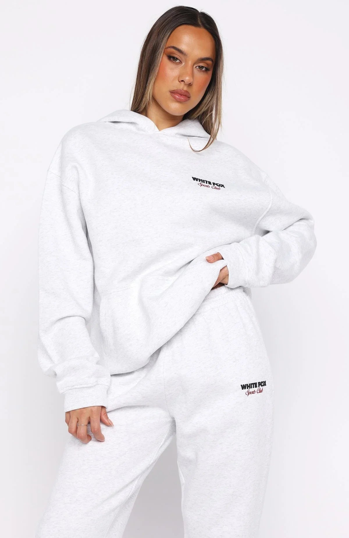 For cozy nights and crisp days, the Club 14 Izzy Oversized Hoodie in Grey Marle is your go-to. Designed with a relaxed hood, slouched shoulders and ribbed hems which round out an oversized silhouette. Featuring long sleeves, a roomy front pocket, and an unlined fleece interior, this hoodie delivers a cozy feel. Finished with puff print White Fox text side front and printed cherry graphic paired with puff print White Fox text centre back. Style with the matching Club 14 Izzy Sweatpants for the perfect lounge set.