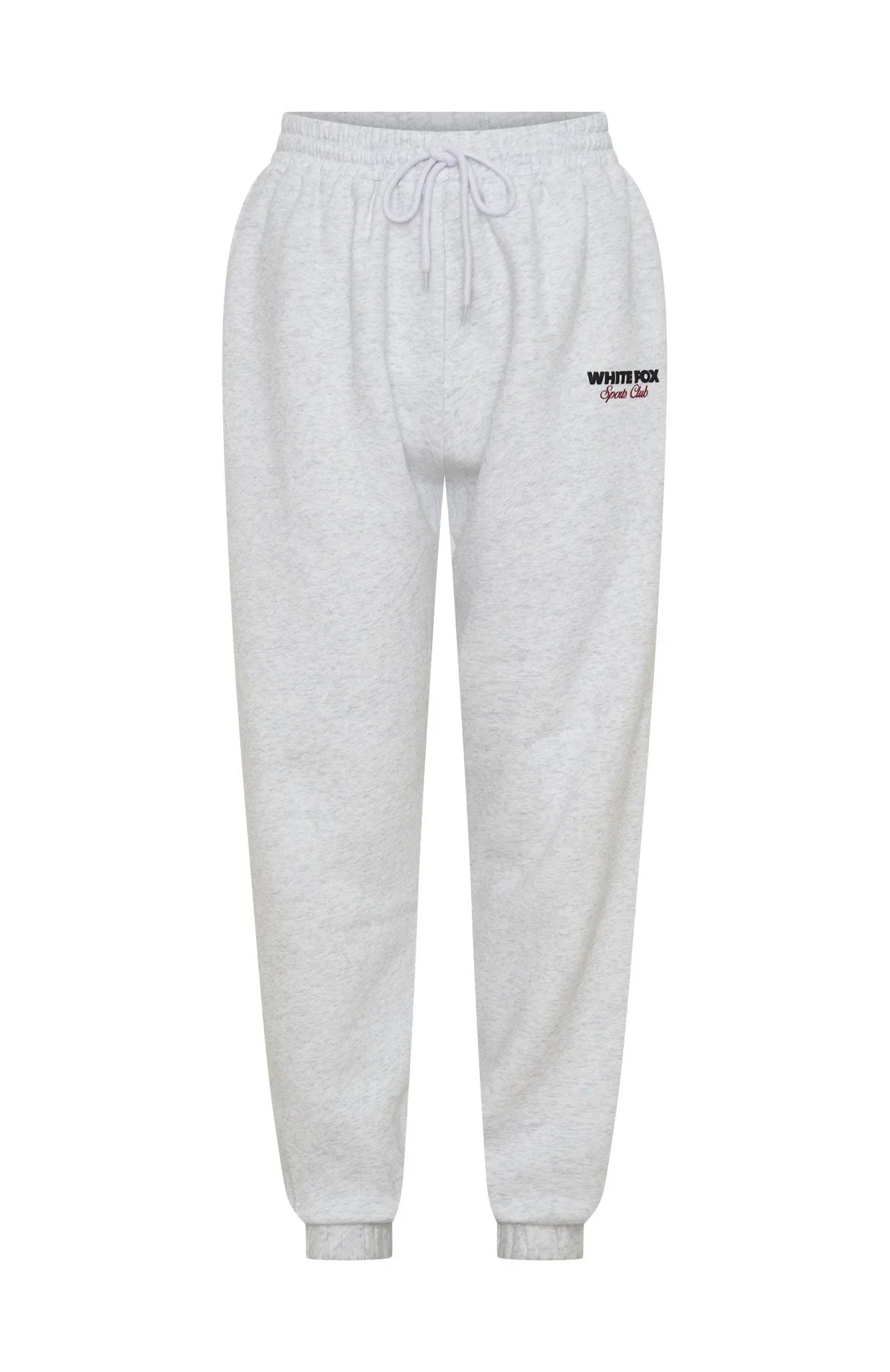 Perfect combo: cuddle weather and the Club 14 Izzy Sweatpants in Grey Marle! Designed with a thick elasticated waistband featuring an external drawstring tie, side pockets, elasticated cuffed ankles, and a slightly oversized silhouette. The White Fox puff-print text at the side adds a signature touch, while the unlined fleece interior ensures a cozy feel. Style with the matching Club 14 Izzy Oversized Hoodie and chunky sneakers for a look we love.