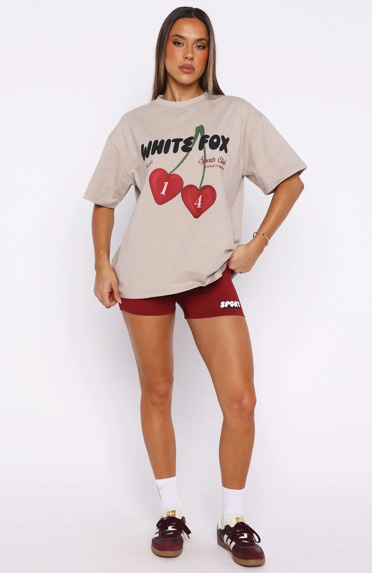 Live the cozy life in the Club 14 Peyton Bike Shorts Burgundy! Features a thick, supportive waistband, a sleek fitted silhouette, an unlined design in high-stretch fabric, and standout White Fox Sport puff-print lettering at the front side. Style with the Club 14 Peyton Oversized Tee, your fave sneakers and sunnies for a colourful look.