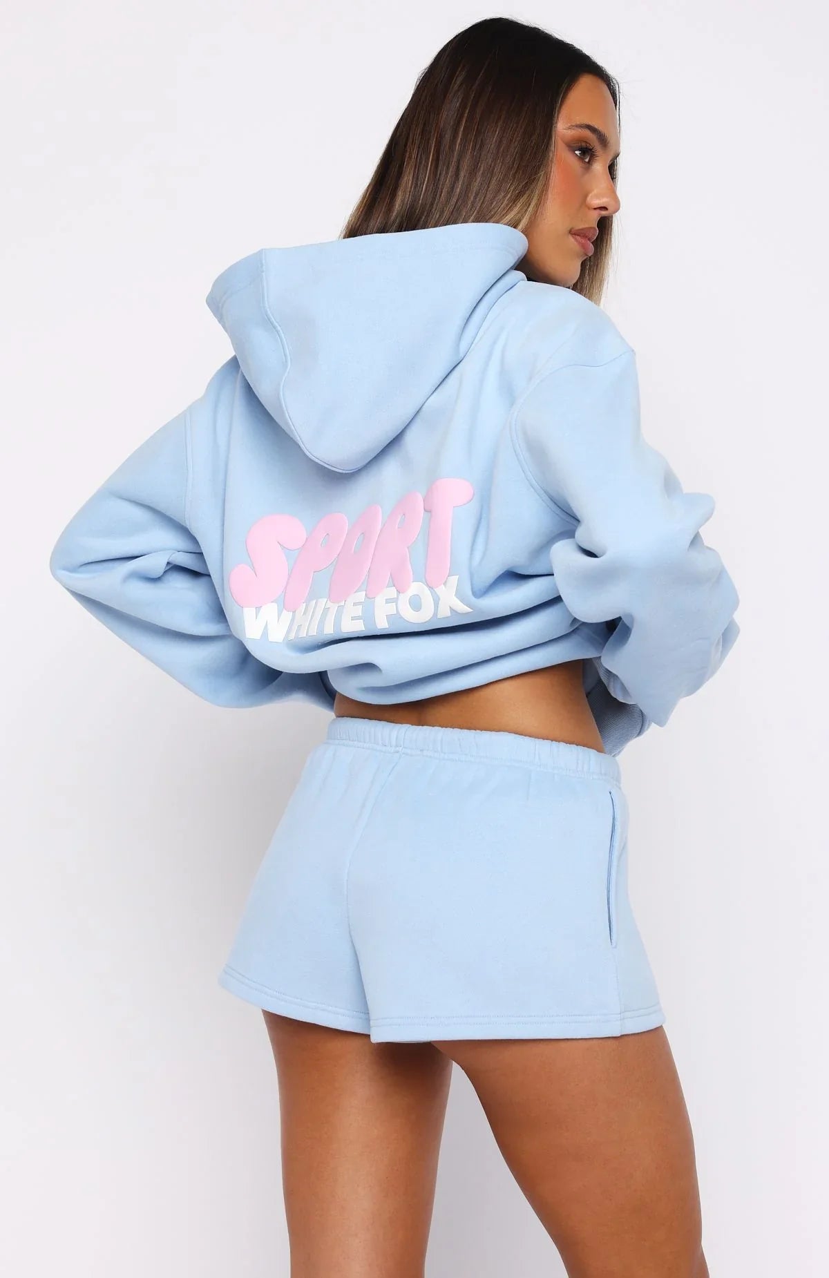 Unwind in style. The Club 14 Peyton Lounge Shorts Blue is designed with a thin elasticated waistband featuring an internal drawstring tie, side hip pockets, and a relaxed silhouette. The White Fox Sport puff print text at the side adds a signature touch, while the unlined fleece interior ensures a cozy feel. Pair with the matching Club 14 Peyton Oversized Hoodie for a colourful and cute look.
