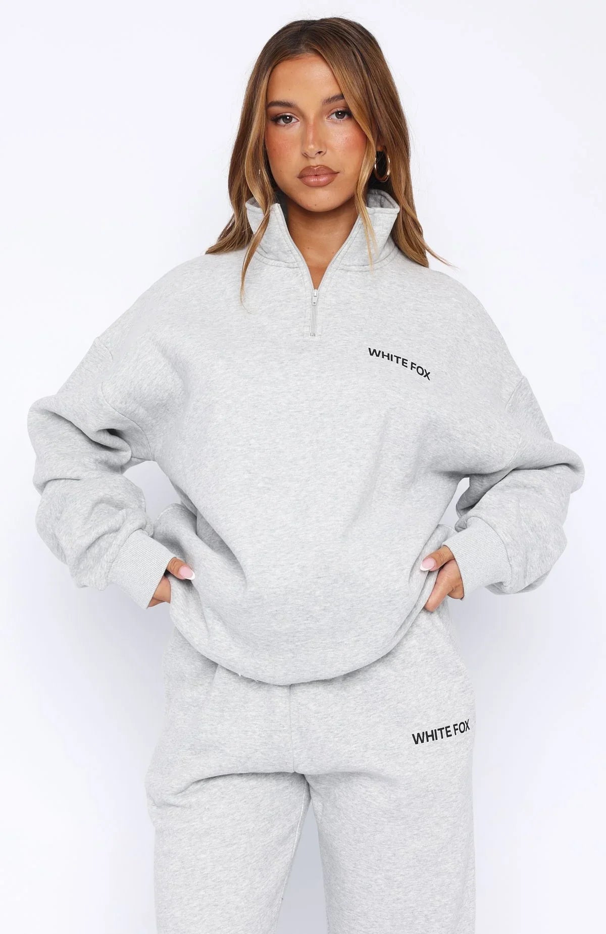 Create the cutest matching moment with your partner in the Core Classic Zip Front Sweater Dark Grey Marle! Featuring an oversized fit, zip front, ribbed hemline and cuffs, printed logo front side and and soft, fleece fabric for extra comfort. Style with any of our Core Classic Bottoms for a look we adore!