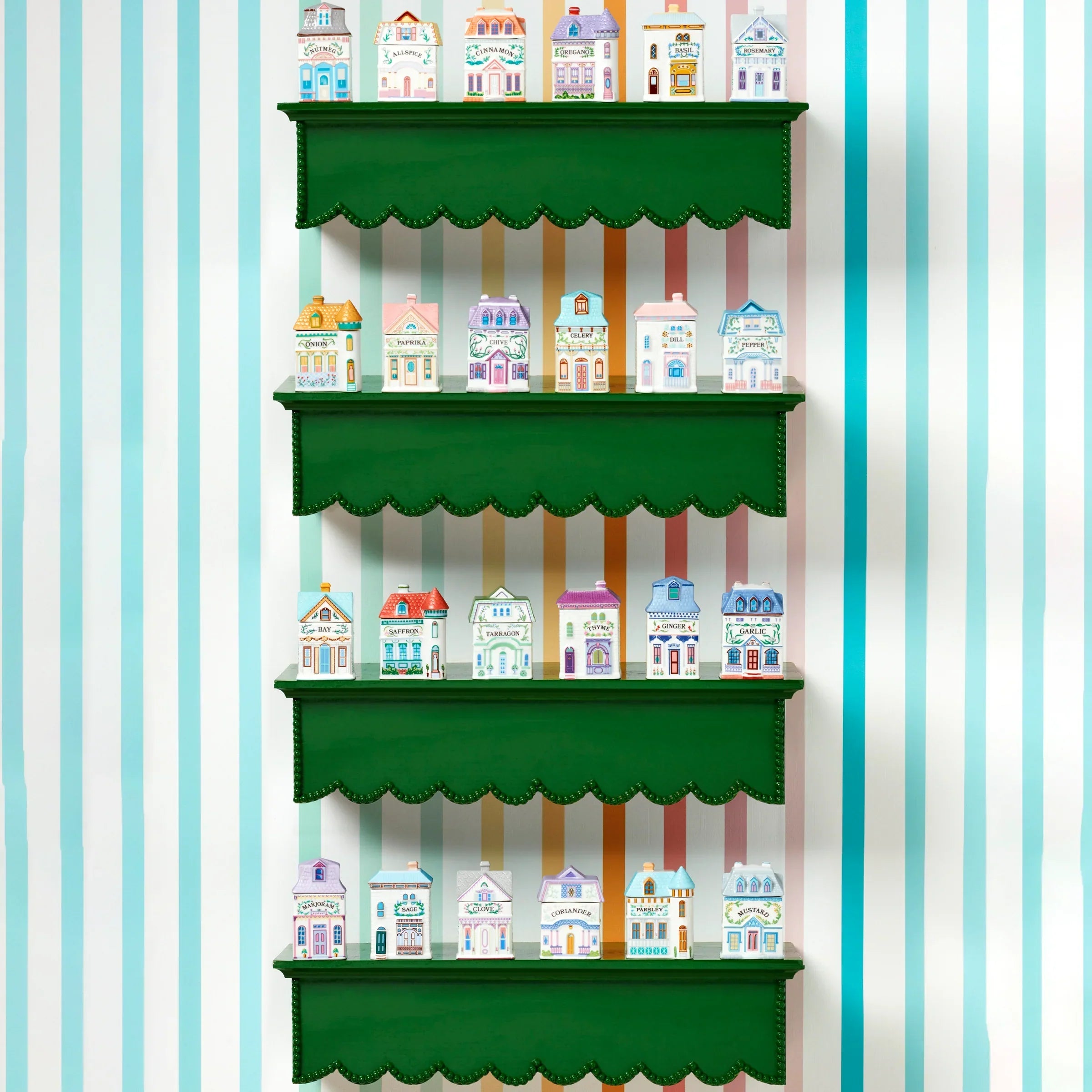 It's about Thyme! (And Paprika, Cinnamon, Saffron, and more!) Discontinued yet adored for decades, The Lenox?Spice Village is back in this adorable Second Edition of the coveted?collection. As lovely and whimsically nostalgic as the 1989 originals, each spice jar in this full set of 24 is a unique and picturesque?miniature Victorian home. Crafted in Lenox fine ivory porcelain and painstakingly hand-painted with delicate designs inspired by an individual spice, each jar is as functional as it is fun. Display them, use them, love them! The Lenox Spice Village brings spice and everything nice to your home and kitchen.?