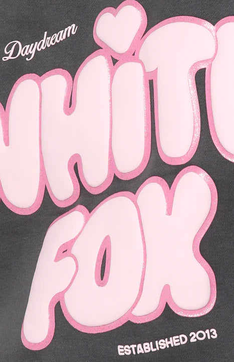 Introducing the Daydreamers Angelina Oversized Hoodie in Volcanic, where staying in becomes the main event. Designed with a relaxed hood, drop shoulder design, side front and centre back puff print logo with glitter outlining detail and ribbed hems which round out to an oversized silhouette. Featuring long sleeves, a roomy front pocket, and an unlined fleece interior, this hoodie delivers a cozy feel. Pair with the matching Daydreamers shorts and your fave sneakers for a cute and cozy look.