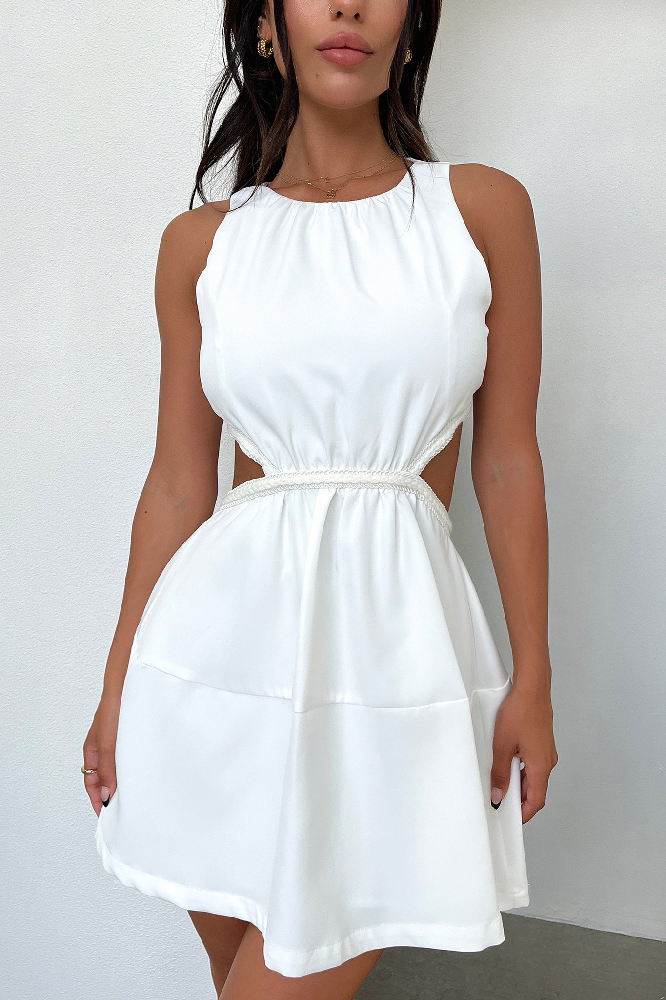 Let the Elita Dress be your go-to choice for a night on the town! Featuring double lined material, an A-line silhouette, high neckline and cut out feature at the back that will make you look classy, yet edgy. Pair her with some statement heels and gold jewellery for a look we love!