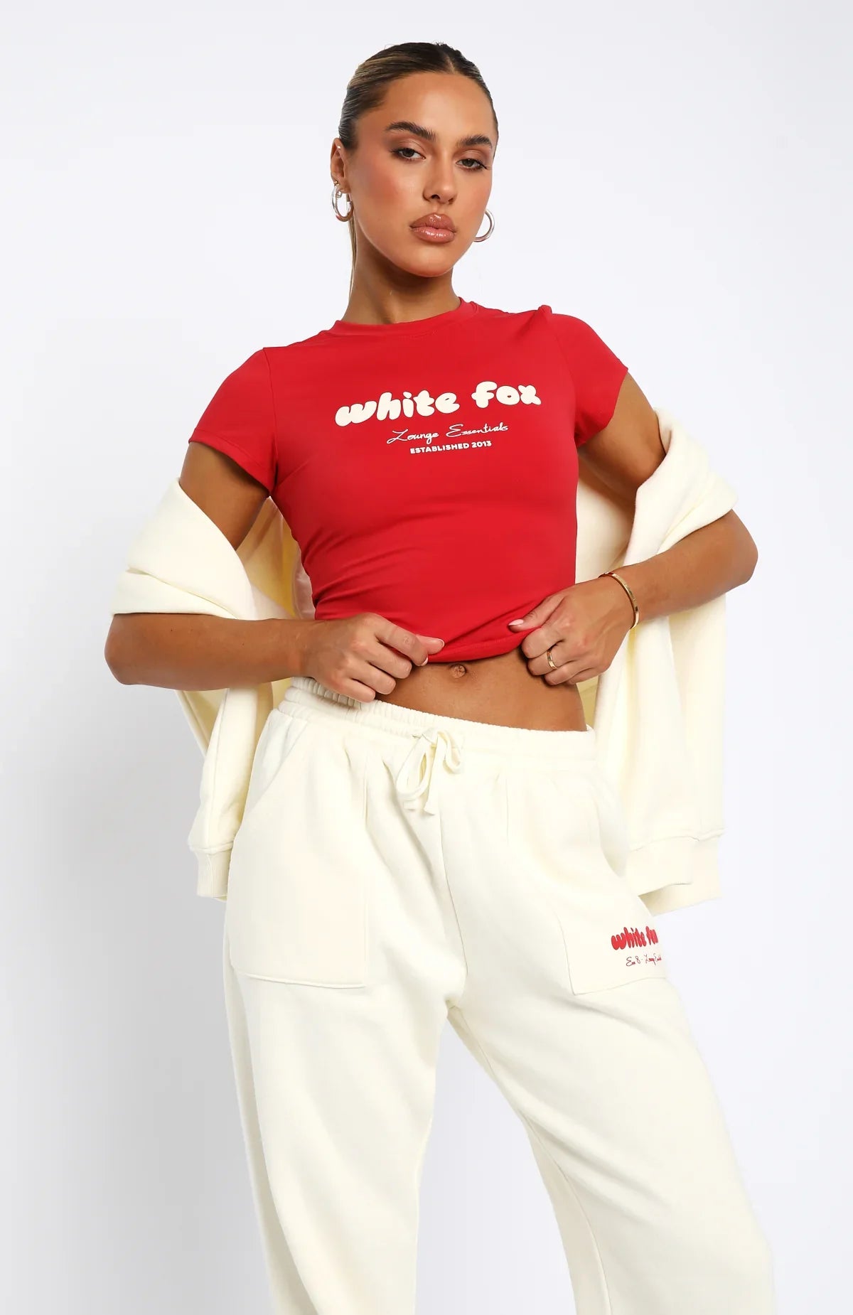 Our current in: cute and comfortable. The Era 8 Baby Tee Salsa is fitted with short sleeves, puff print logo centre front and soft stretch fabric. Complete the set with one of our matching Era 8 Bike Shorts, Era 8 Lounge Shorts or the Era 8 Sweatpants!