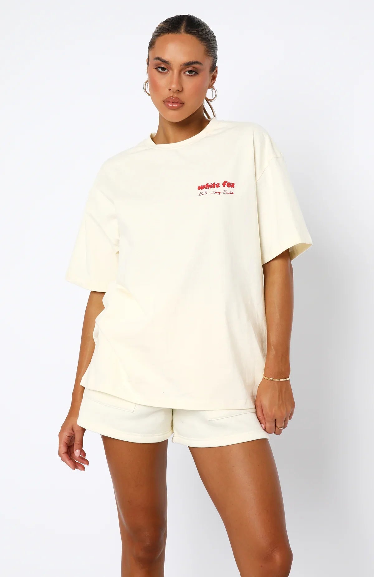 Time to level up your lounge! The Era 8 Oversized Tee Cherry Cream is an oversized fit with slouch shoulders, round neckline, and a puff print graphic side front. Match with the Era 8 Bike Shorts, Lounge Shorts or Sweatpants!