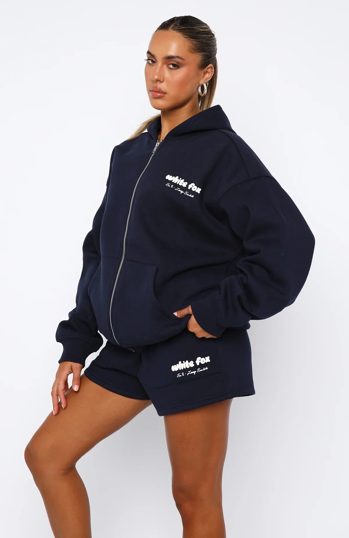 Have your lounge moment in the Era 8 Zip Front Hoodie Nautical. Features elasticated ribbed cuffs & hem, hood, zip-up front, soft fleeced fabric for extra comfort, puff print logo side front and soft fleece lining for ultimate comfort. Pair with one the matching Era 8 bottoms for a cosy look we love!