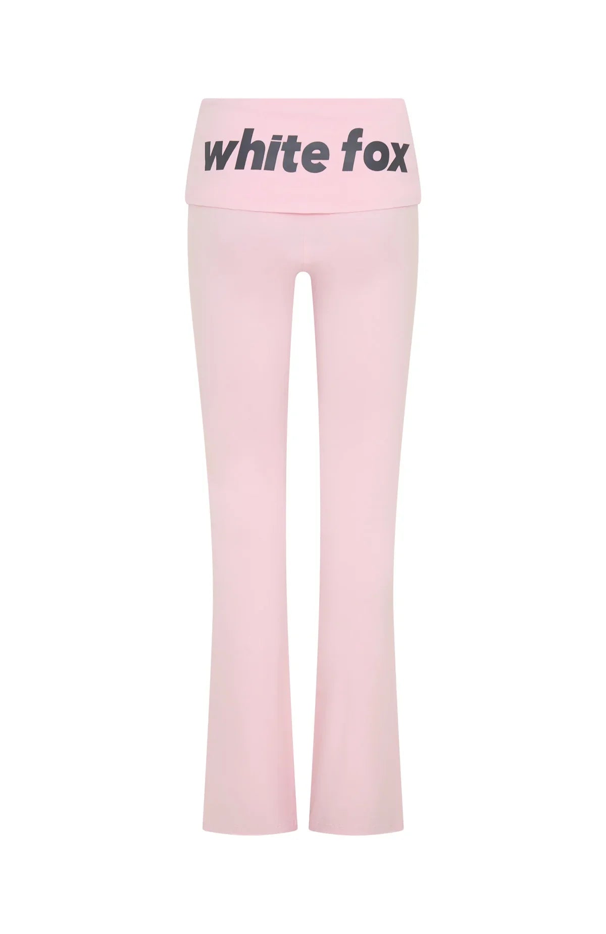 Lounge in style with the From The Archives Gigi Fold Over Flare Pants Pink. Featuring a thick, elasticated fold over waistband with back logo detailing, full length, unlined material, and flare design. Team with your favourite From The Archives top in Pink!