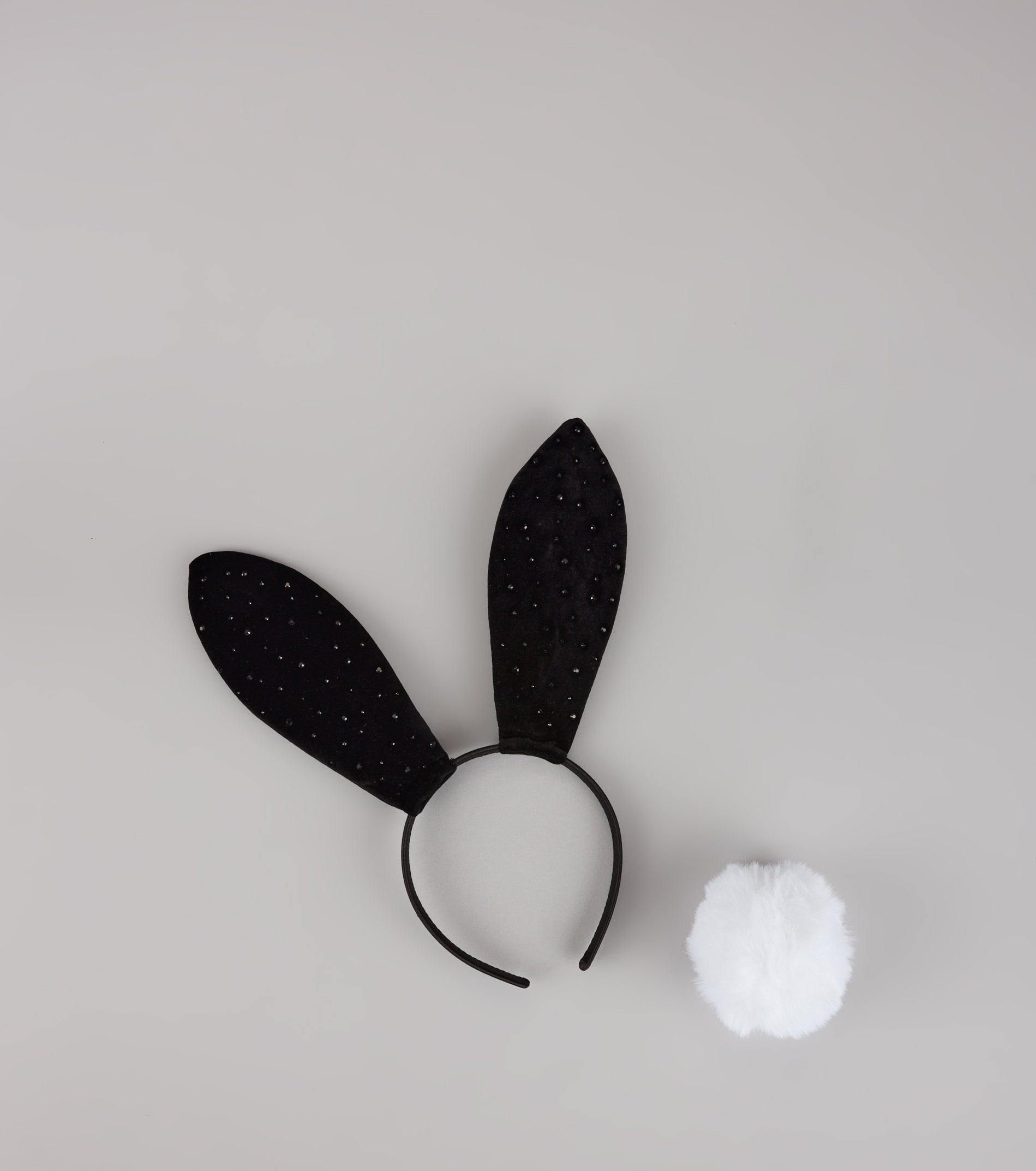 Serving iconic bunny vibes with a luxe twist—this bunny ear and tail set will complete your irresistible look. Perfect for Halloween costume parties and themed nights!