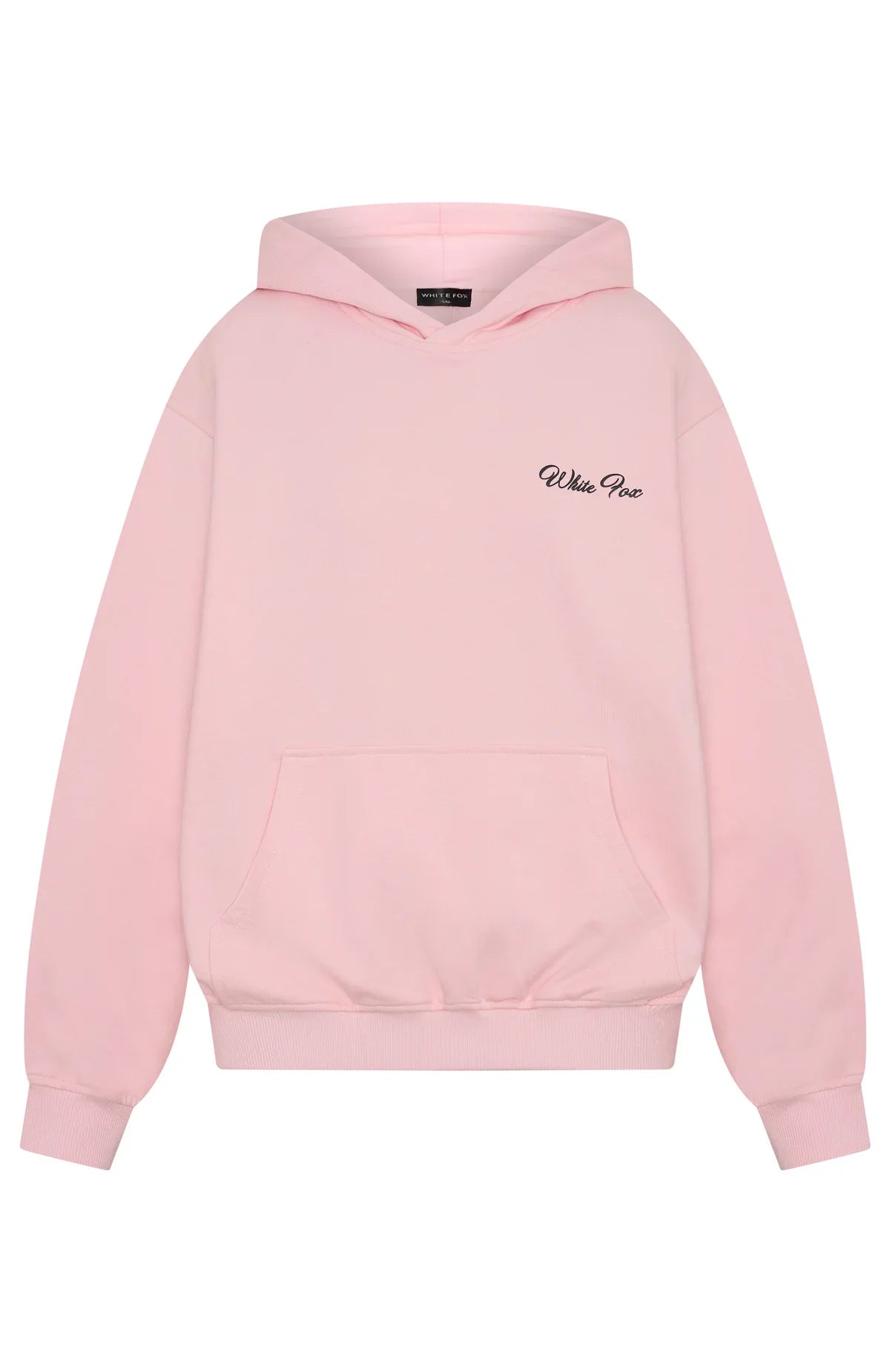 Wrap yourself in perfection with the Lucky Thirteen Shaya Oversized Hoodie in Soft Pink. Designed with a relaxed hood, slouched shoulders and ribbed hems which round out an oversized silhouette. Featuring long sleeves, a roomy front pocket, and an unlined premium loop-back interior, this hoodie delivers a cozy feel. Charcoal coloured White Fox puff‑print cursive text embellishes the side front and hood hemline. Style with the matching Lucky Thirteen Shaya Wide Leg Sweatpants.