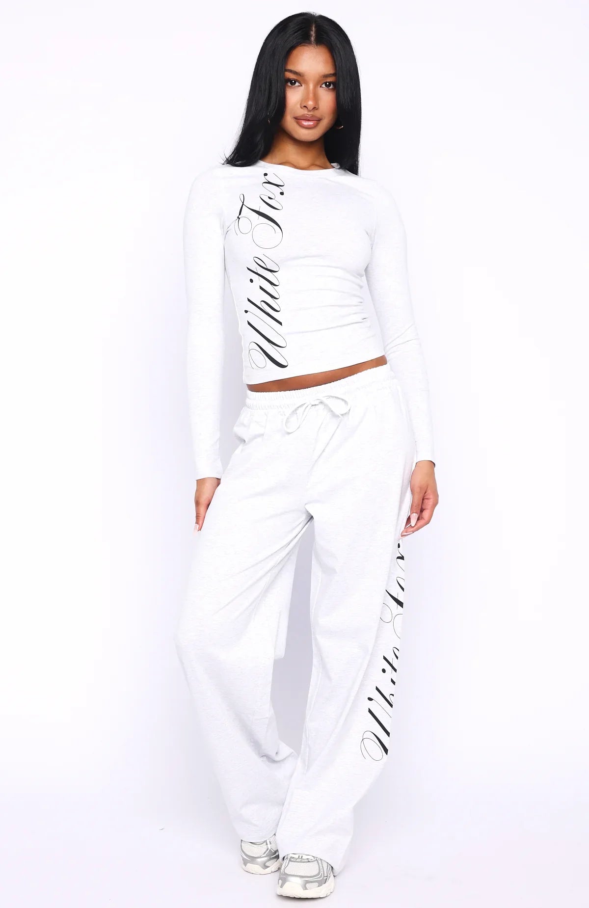 I'm nicer when i like my outfit! The Luxurious Girl Track Pants Grey Marle features a thick elastic waistband with drawstring for an easy, comfy fit. The wide-leg cut and cursive White Fox script down the side add laid-back style. Soft, unlined and perfect for everyday wear. Style with the matching Luxurious Girl Long Sleeve Baby Tee Grey Marle for a super cute, cosy look!