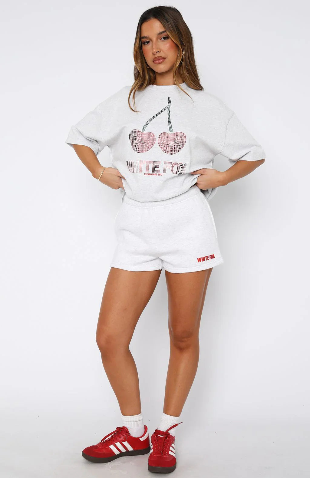 New crush alert: the Made With Love Shorts Grey Marle! Featuring a thick, elasticated waistband with inner drawstring design, side pockets, soft fleece lining for extra comfort and side front and back print/diamanté logo detailing.