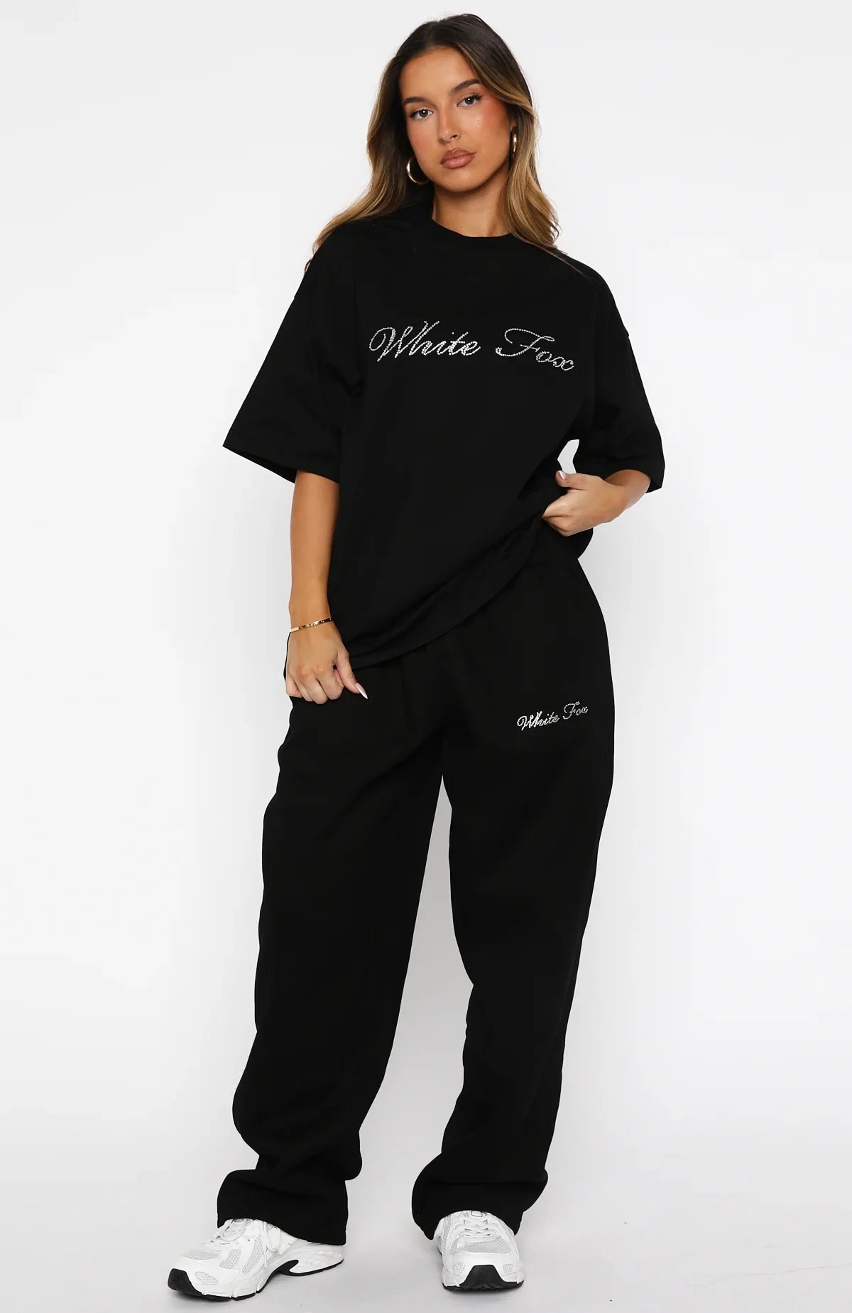 My go-to self-care tee, meet the Make It Or Break It Oversized Tee in Black. It has a relaxed, oversized fit with a classic crew neckline and short sleeves, and is finished with sparkling diamante White Fox text across the centre front. Style with the matching Make It Or Break It Wide Leg Sweatpant.