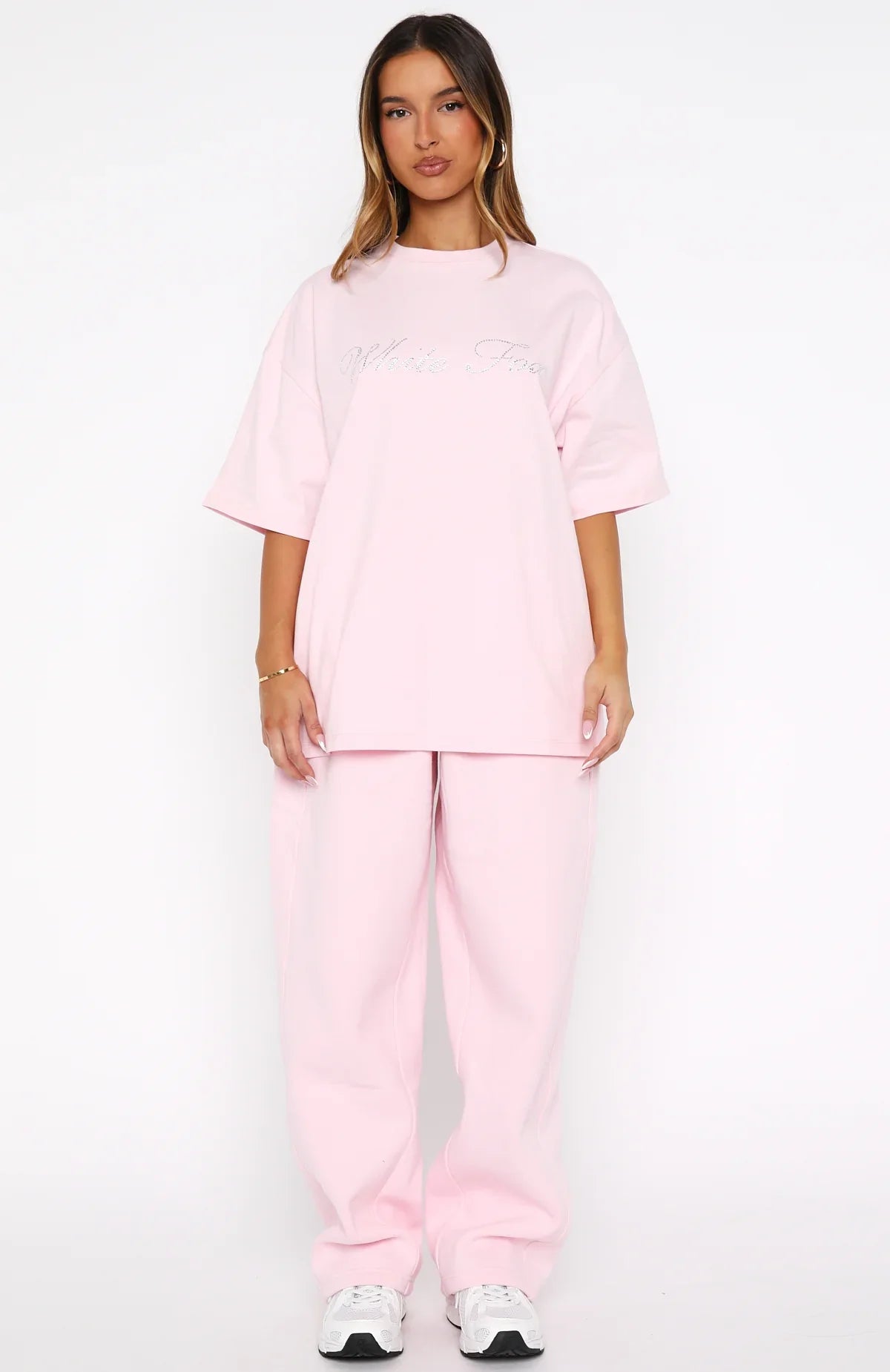 My go-to self-care tee, meet the Make It Or Break It Oversized Tee in Pink. It has a relaxed, oversized fit with a classic crew neckline and short sleeves, and is finished with sparkling diamante White Fox text across the centre front. Style with the matching Make It Or Break It Wide Leg Sweatpant.
