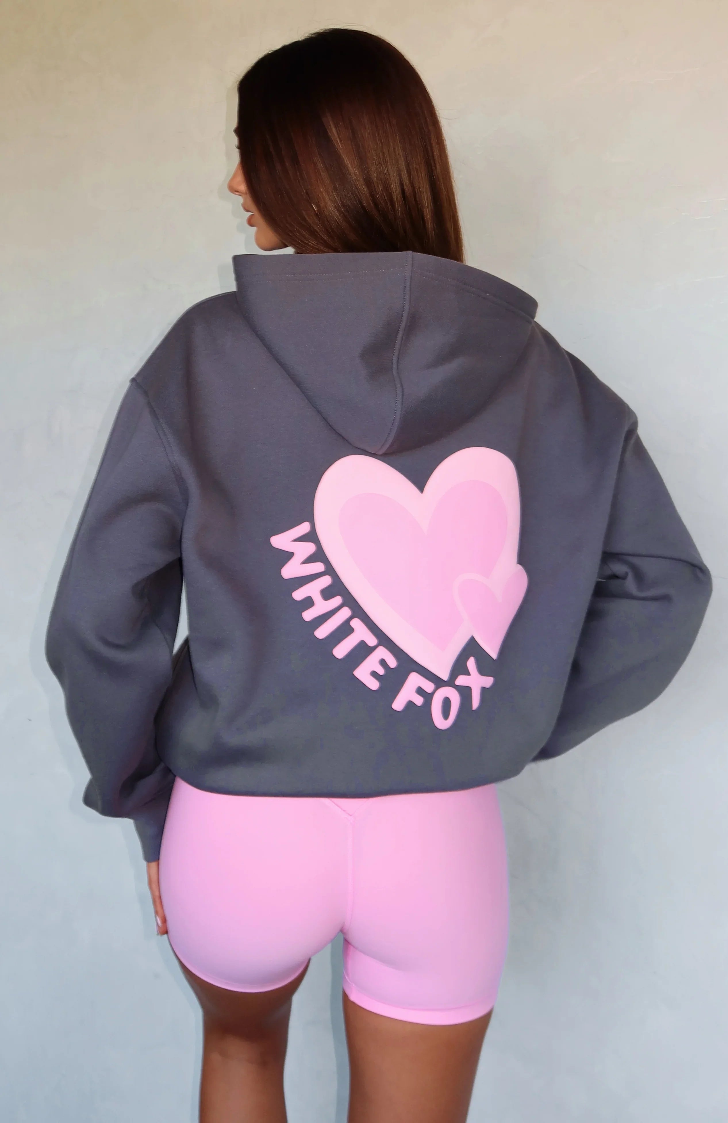 Tailored for the biggest of hearts - our Never Stopping Oversized Hoodie in Volcanic pulls on all the heartstrings! Designed with a hood, slouched shoulders and long sleeves with ribbed cuffs, this hoodie features puff print graphics at the front side and centre back. Finished with a large front pocket, ribbed hem and a relaxed oversized fit. Pair with lounge shorts and sunnies for a cosy weekend fit!