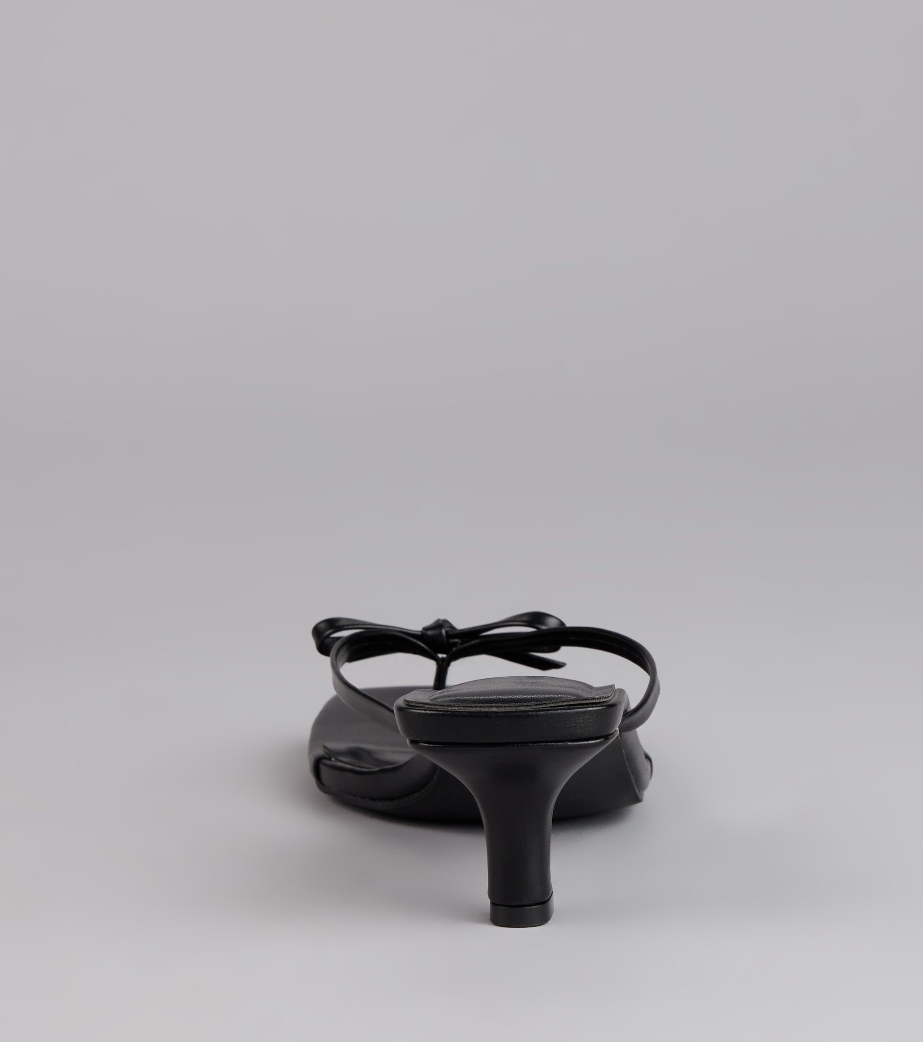 A little sweet, a little sassy—these kitten heels are low-key flirty perfection. The square toe, delicate thong strap, and bow detail make them your go-to for dressing up any look.