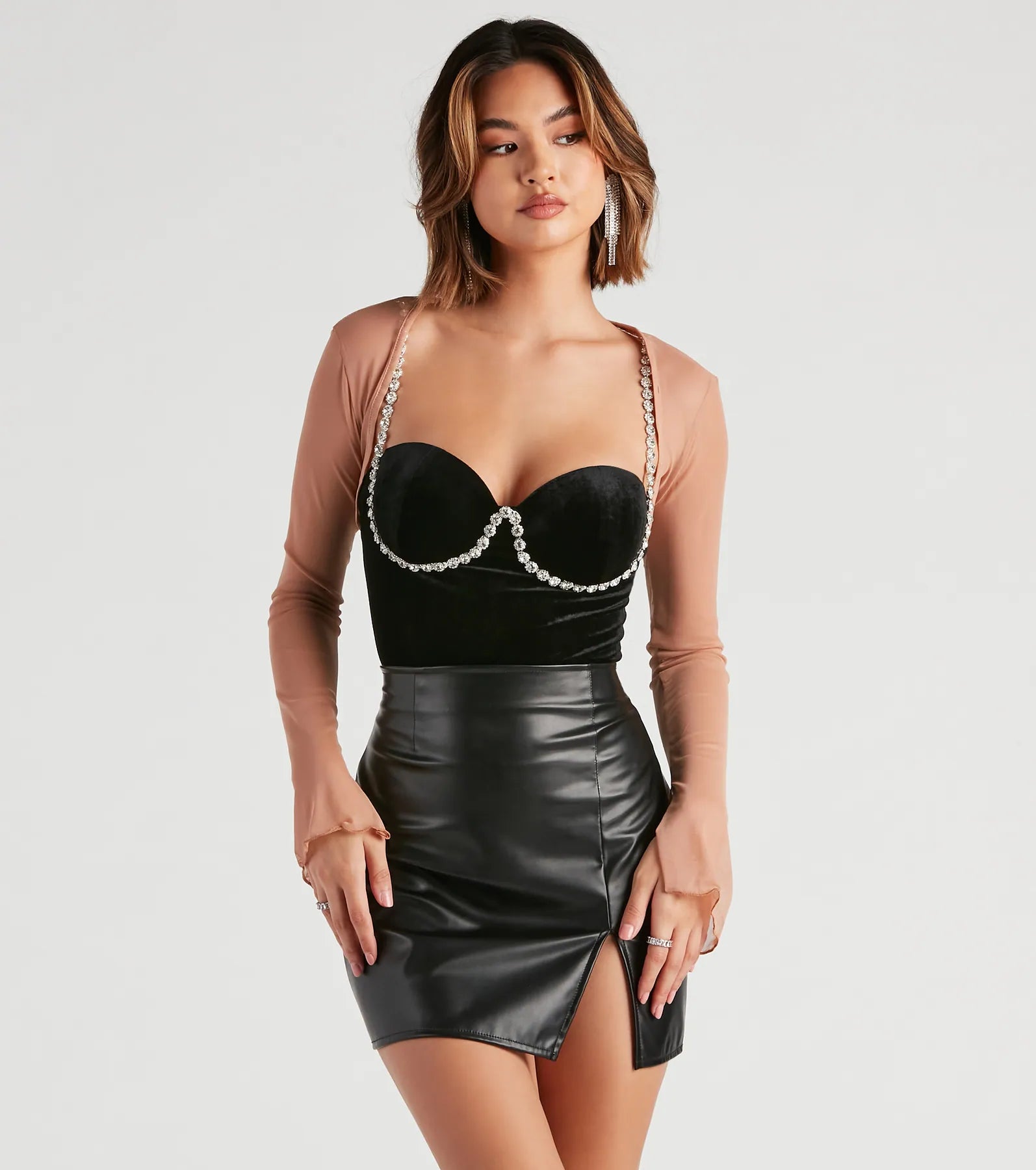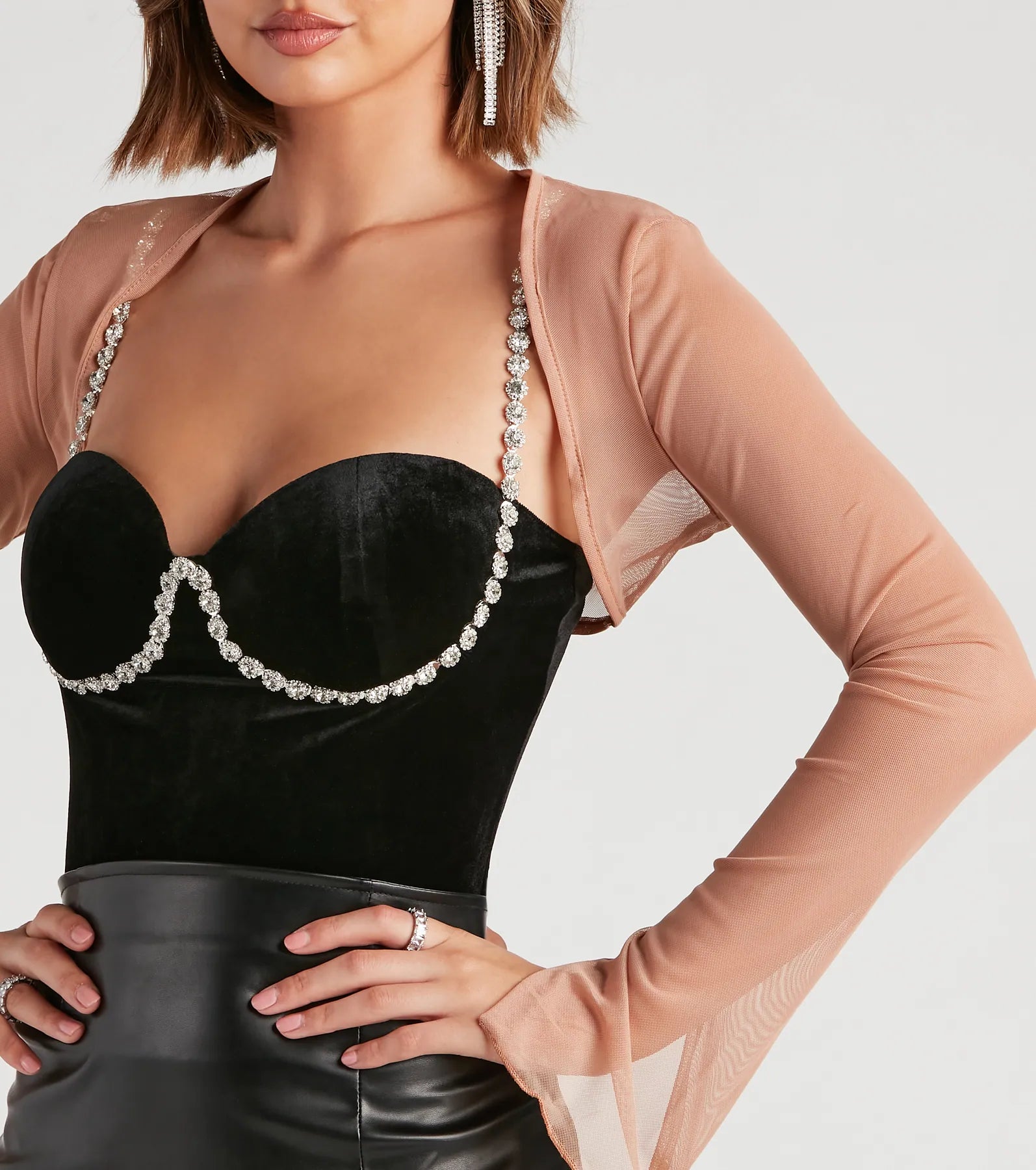 Layer on the chic elegance in this mesh bolero top designed to elevate your everyday looks to formal ensembles. The sheer long sleeves perfectly cover your arms with a touch of sophistication, while the cropped silhouette is the ideal layering piece that won't take away from a stunning formal or .