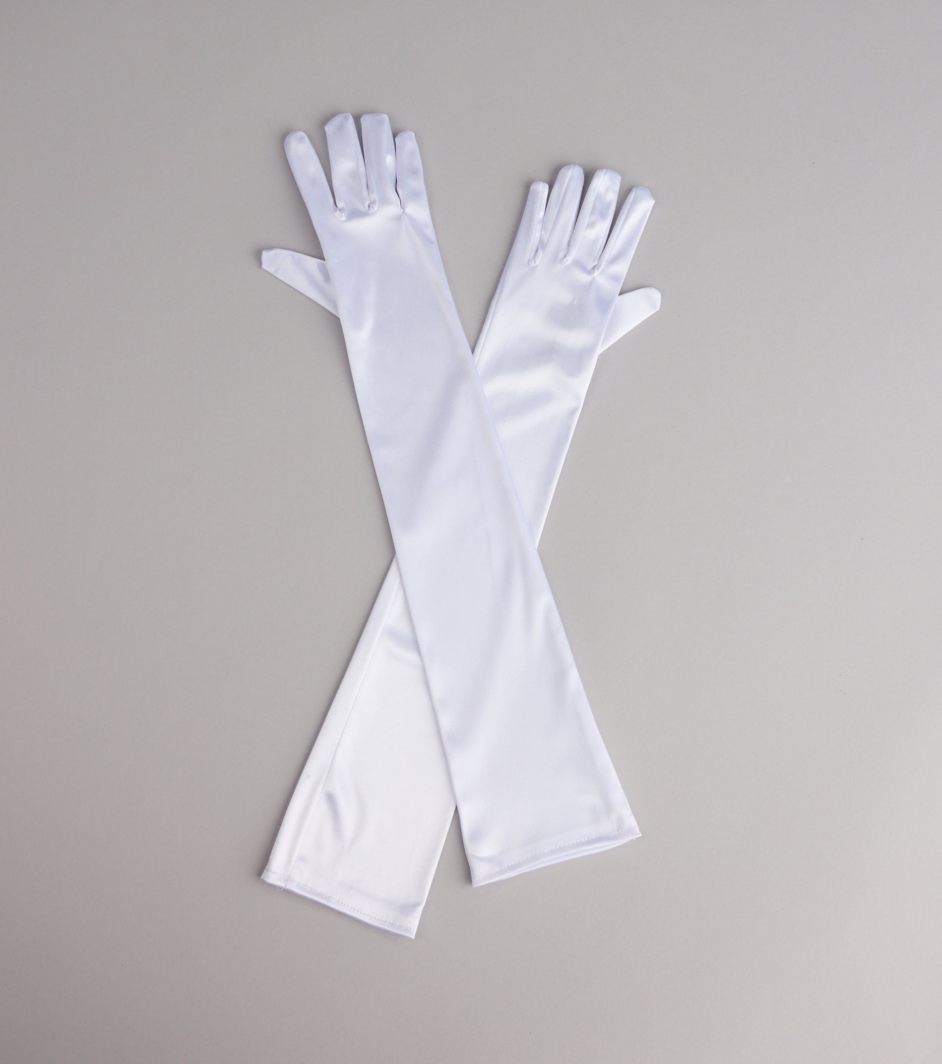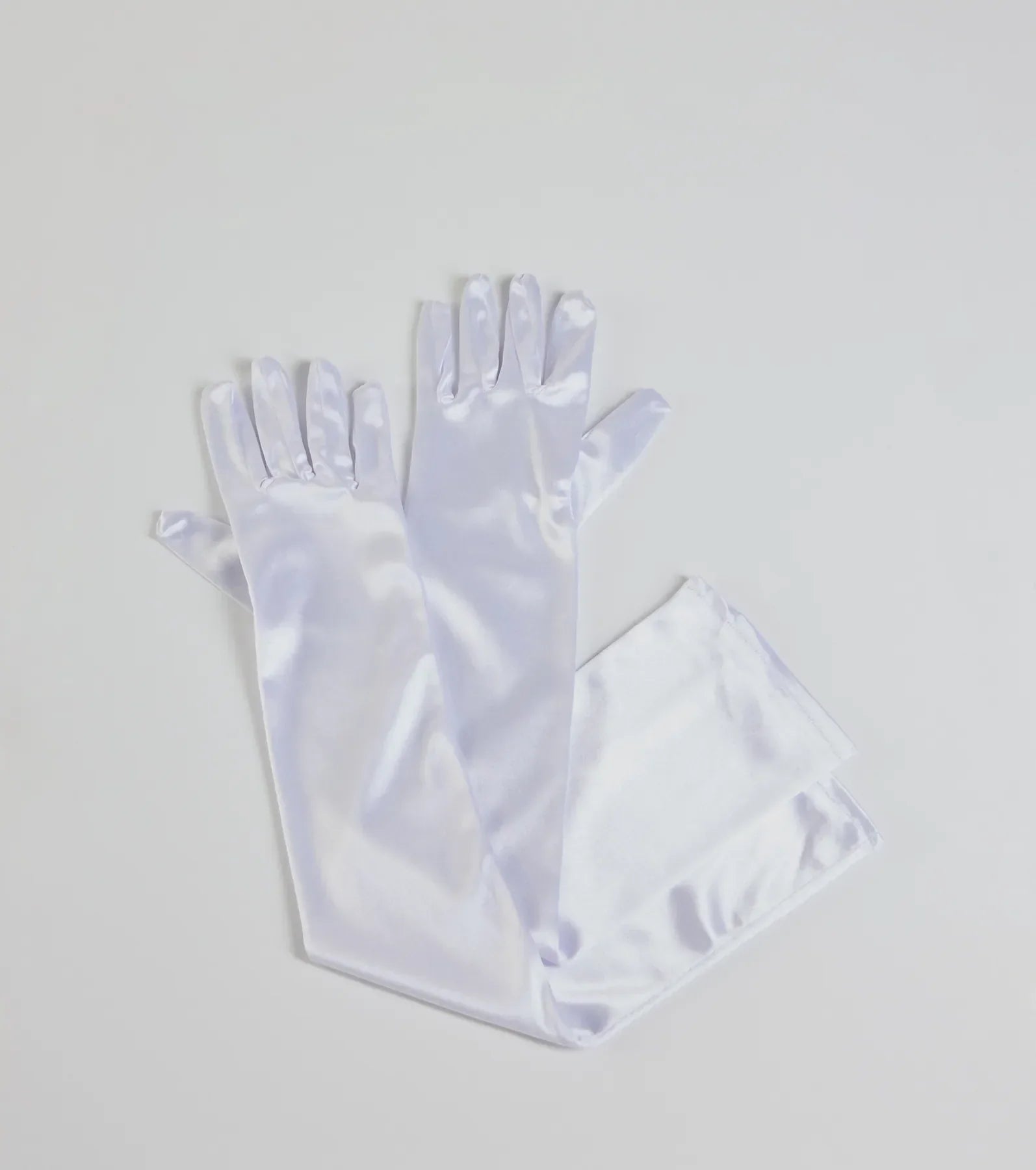 Elevate your formal looks with these satin gloves that provide a sleek fit! They feature a long-length design that hits past the elbows in a silky smooth satin fabric. Style with a floor-length and a rhinestone jewelry set!