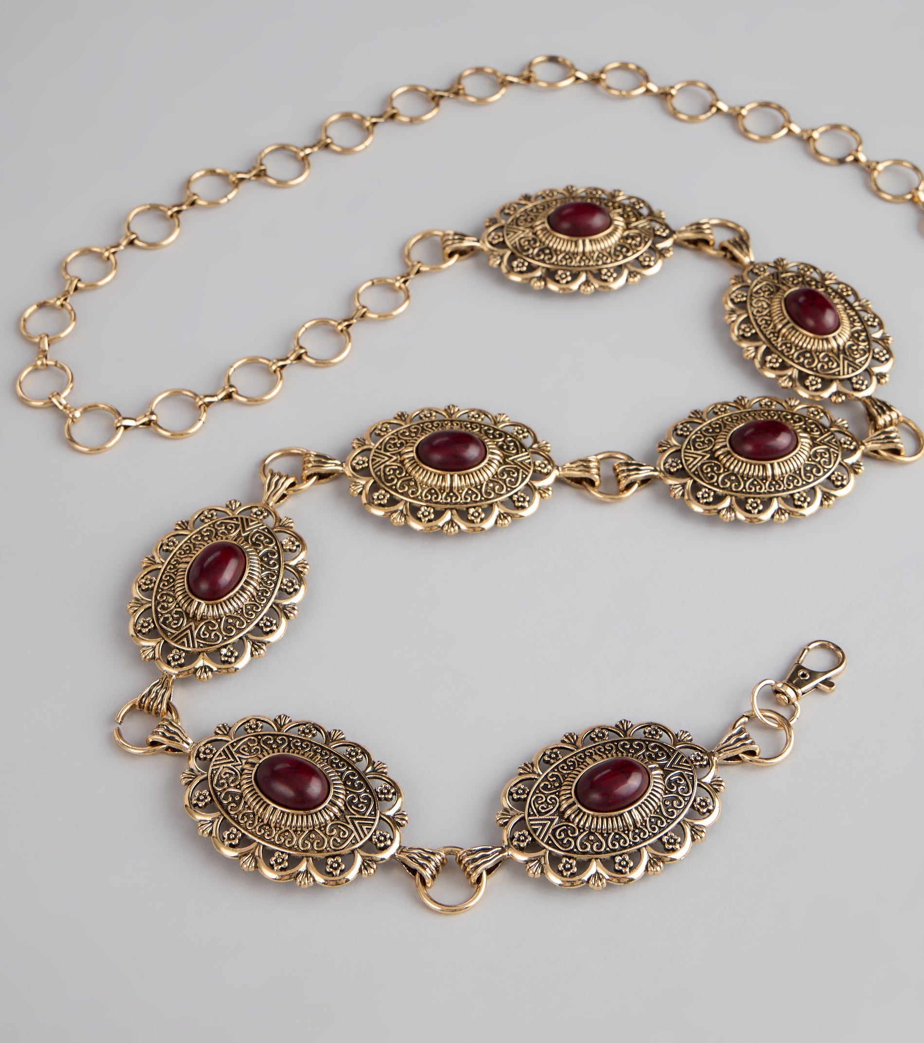 This statement concho chain belt offers the perfect finishing touch for your festival or concert fit!