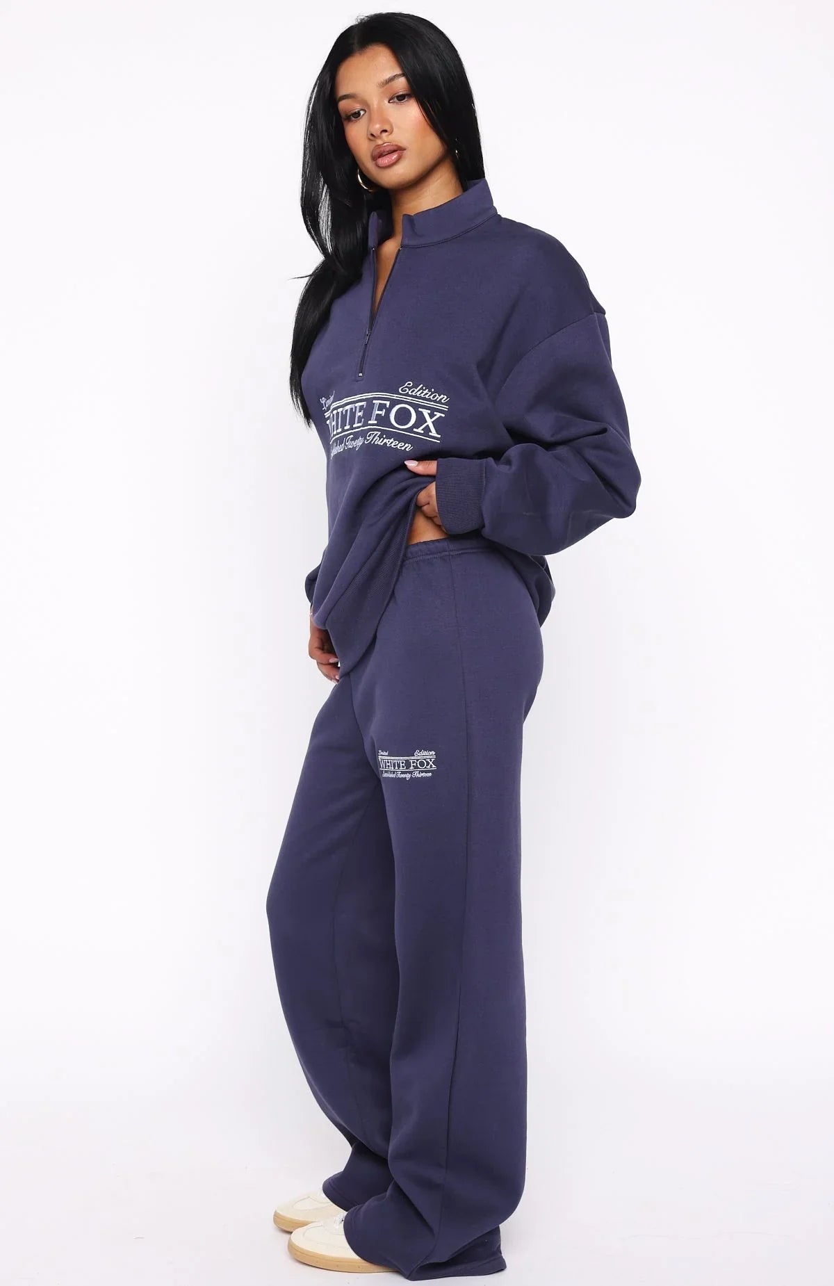 Lounge life just got a whole lot cuter. The Standing My Ground Wide Leg Sweatpants Navy is designed with a thick elasticated waistband featuring an internal drawstring tie and a wide-leg silhouette. The White Fox embroidered text at the side adds a signature touch, while the unlined fleece interior ensures a cozy feel. Pair with the matching Standing My Ground Zip Front Sweater and sunnies for the perfect Sunday fit.