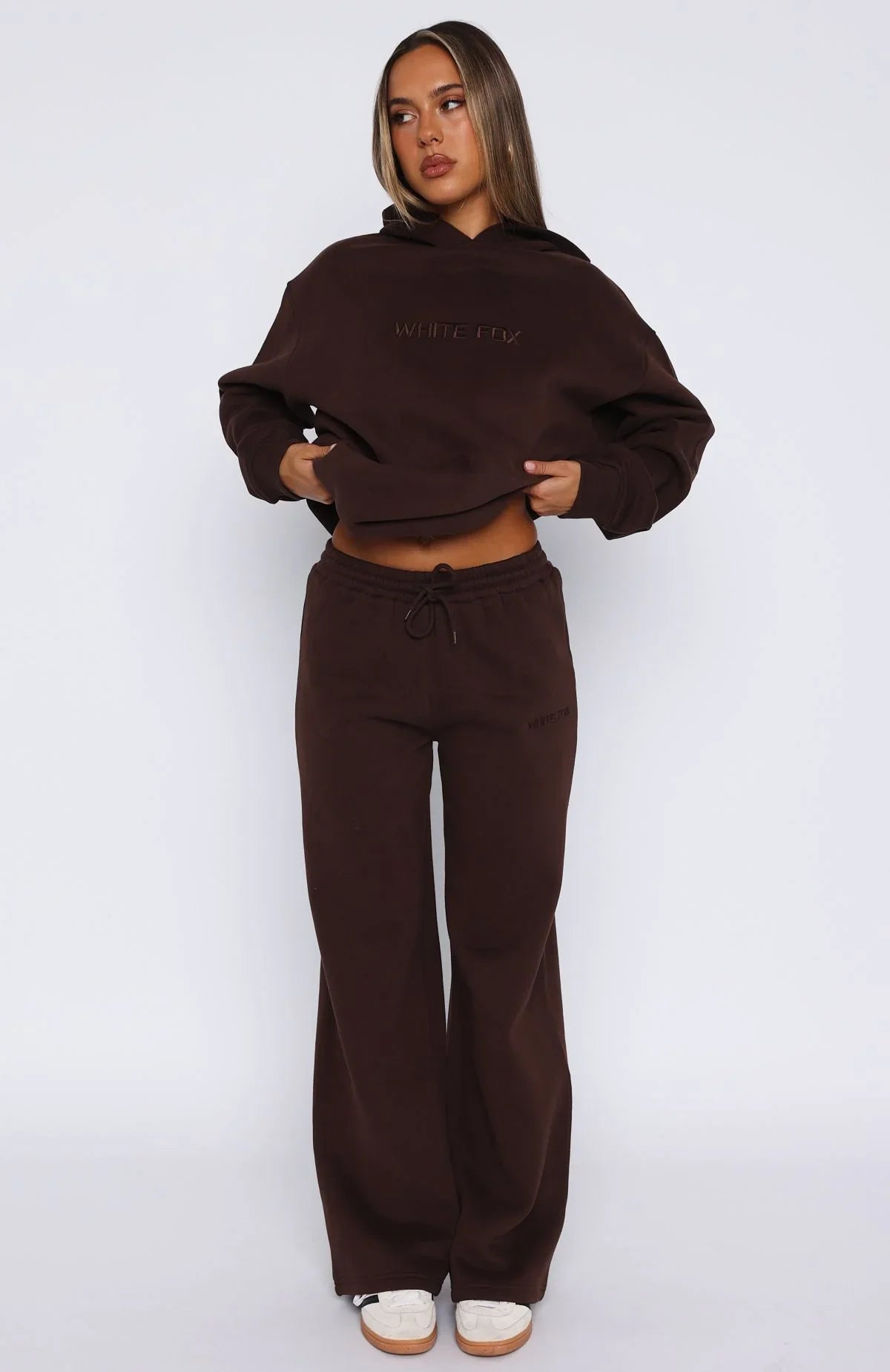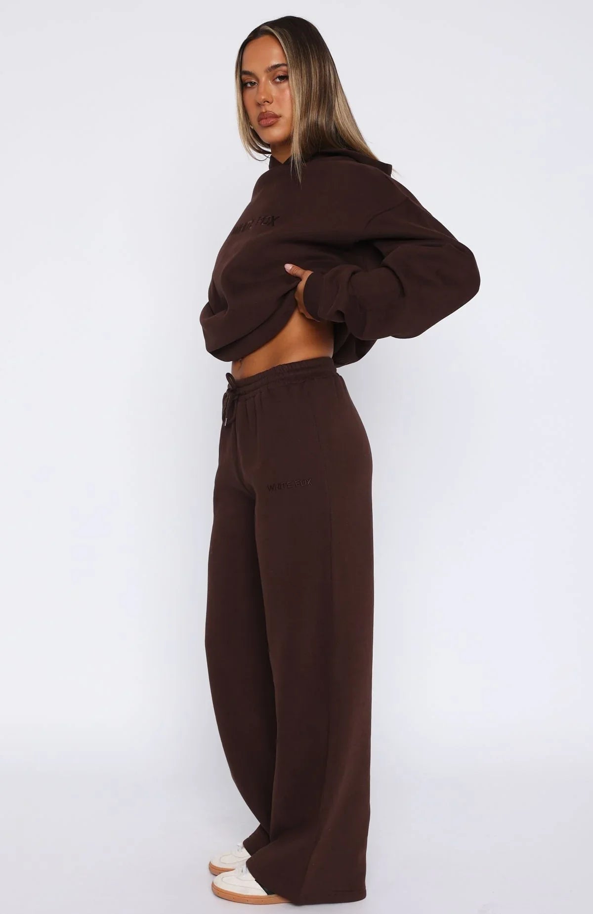Lounge season is EVERY season. The Stay Lifted Wide Leg Sweatpants Bitter Chocolate feature a high elasticated drawstring waistband, wide leg design, and soft fleece fabric for extra comfort. Pair with the Stay Lifted Oversized Hoodie in Bitter Chocolate!