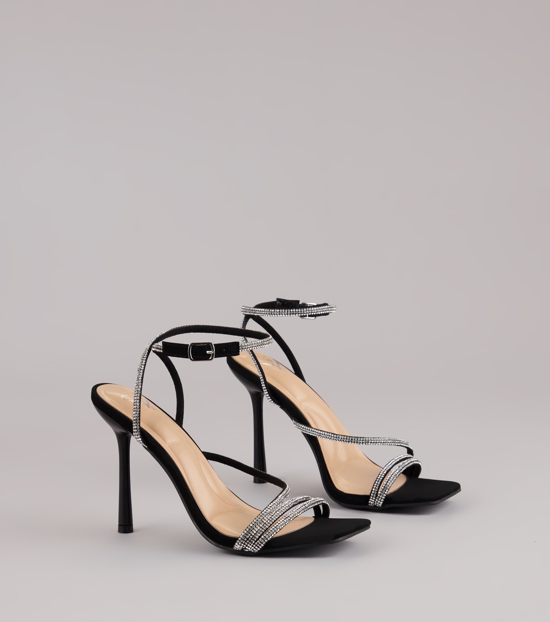 Meet the heels that practically come with their own spotlight—sleek stilettos draped in rhinestone straps for the perfect mix of glam and sass. Made to pair with dressy evening looks or a chic GNO.