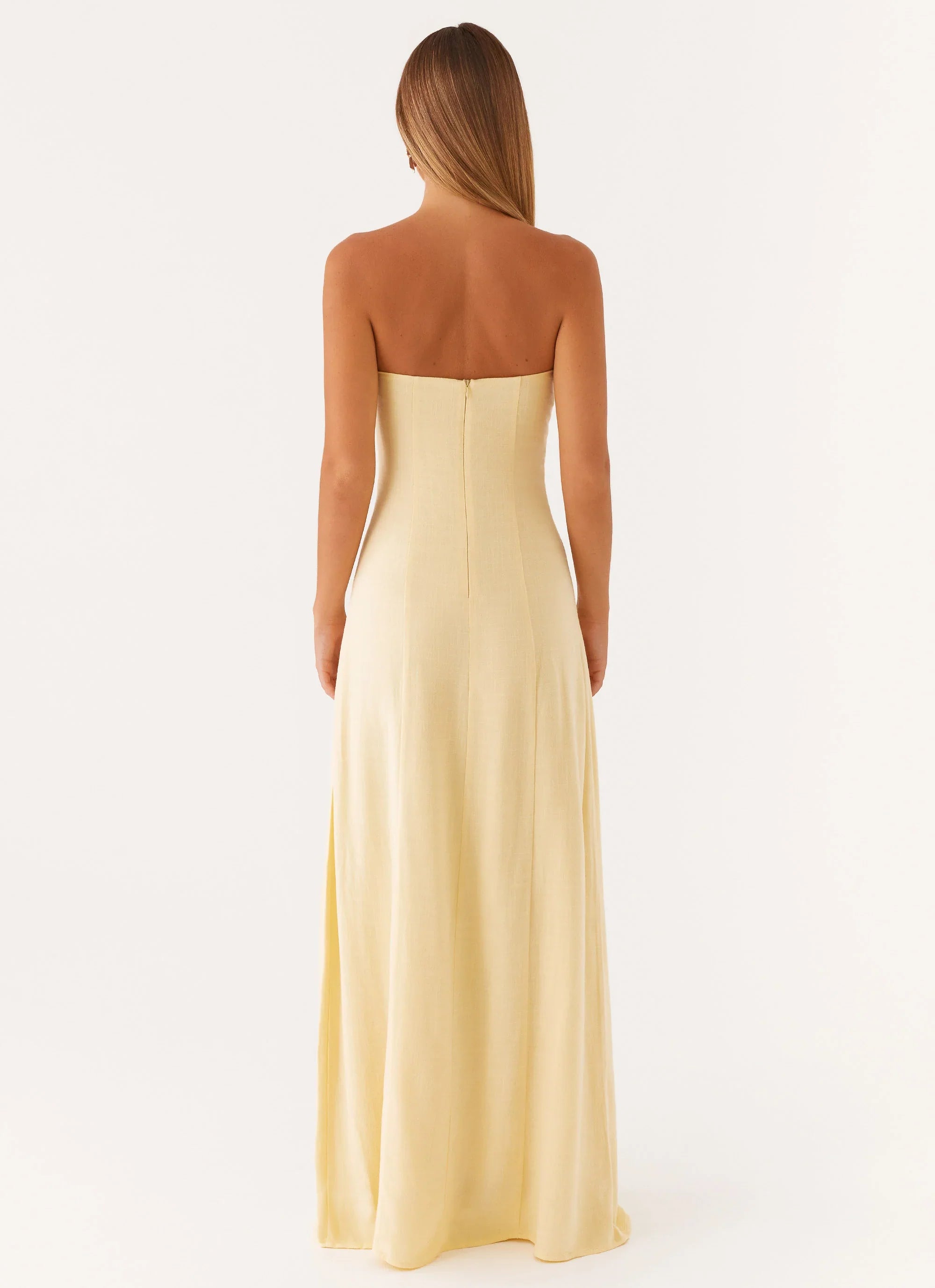 The Tayla Linen Maxi Dress is a timeless piece that exudes effortless elegance. Featuring a strapless neckline, it highlights the shoulders with a soft, feminine touch. Fully lined for comfort, the flare fit adds a flowing, graceful silhouette. Crafted from breathable linen, this maxi dress is perfect for warm weather and special occasions, offering both style and comfort in one chic design.