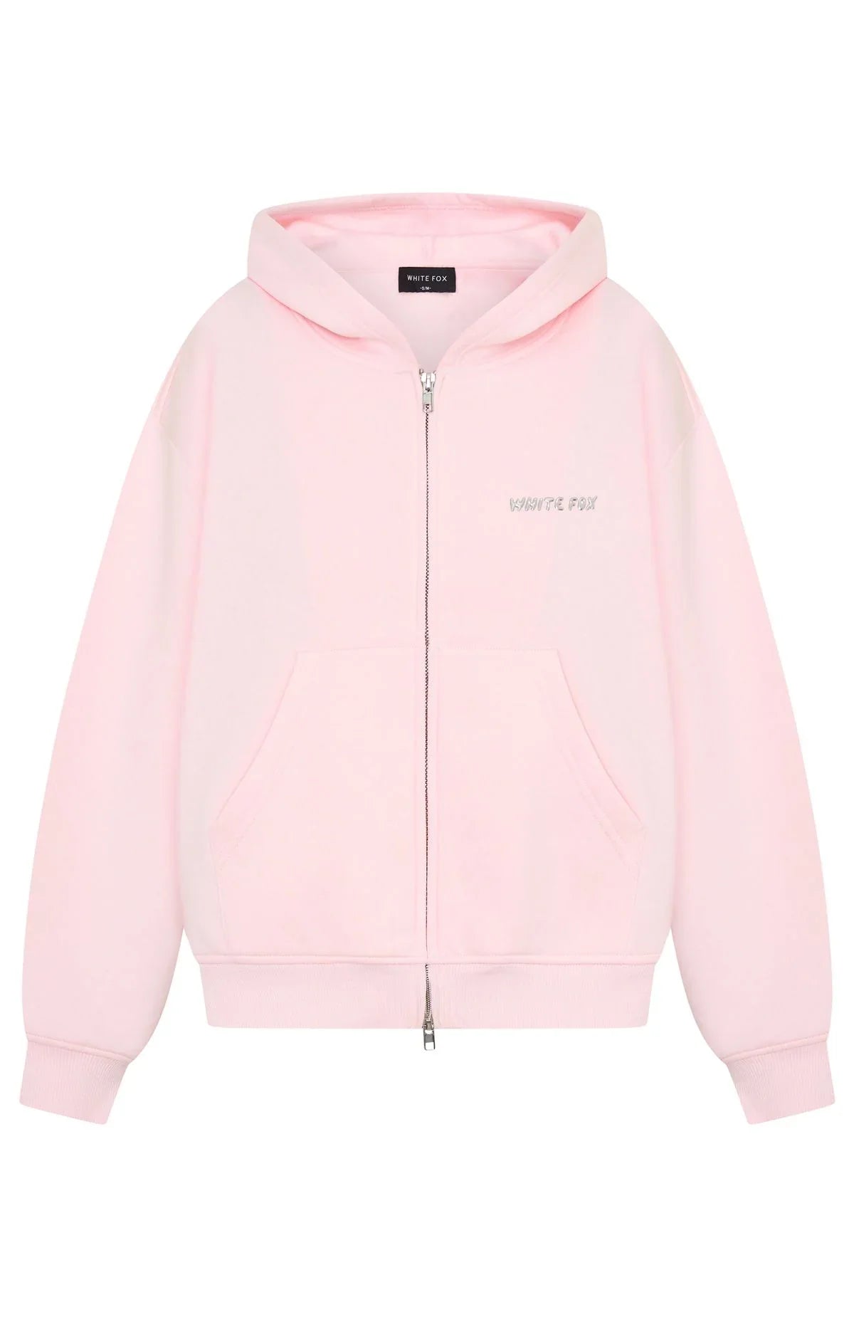 Lounge lovers are obsessed with the Test Drive Boxy Zip Front Hoodie in Icy Pink! Designed with a relaxed hood, slouched shoulders, ribbed cuffs, and ribbed waist panel for a cinched look. This boxy fit hoodie features long sleeves, front zipper double ended closure, and an unlined fleece interior, this hoodie delivers a cozy feel. Finished with puff print metallic White Fox text side front. Style with the matching Test Drive Lounge Shorts for a cozy yer cool fit.