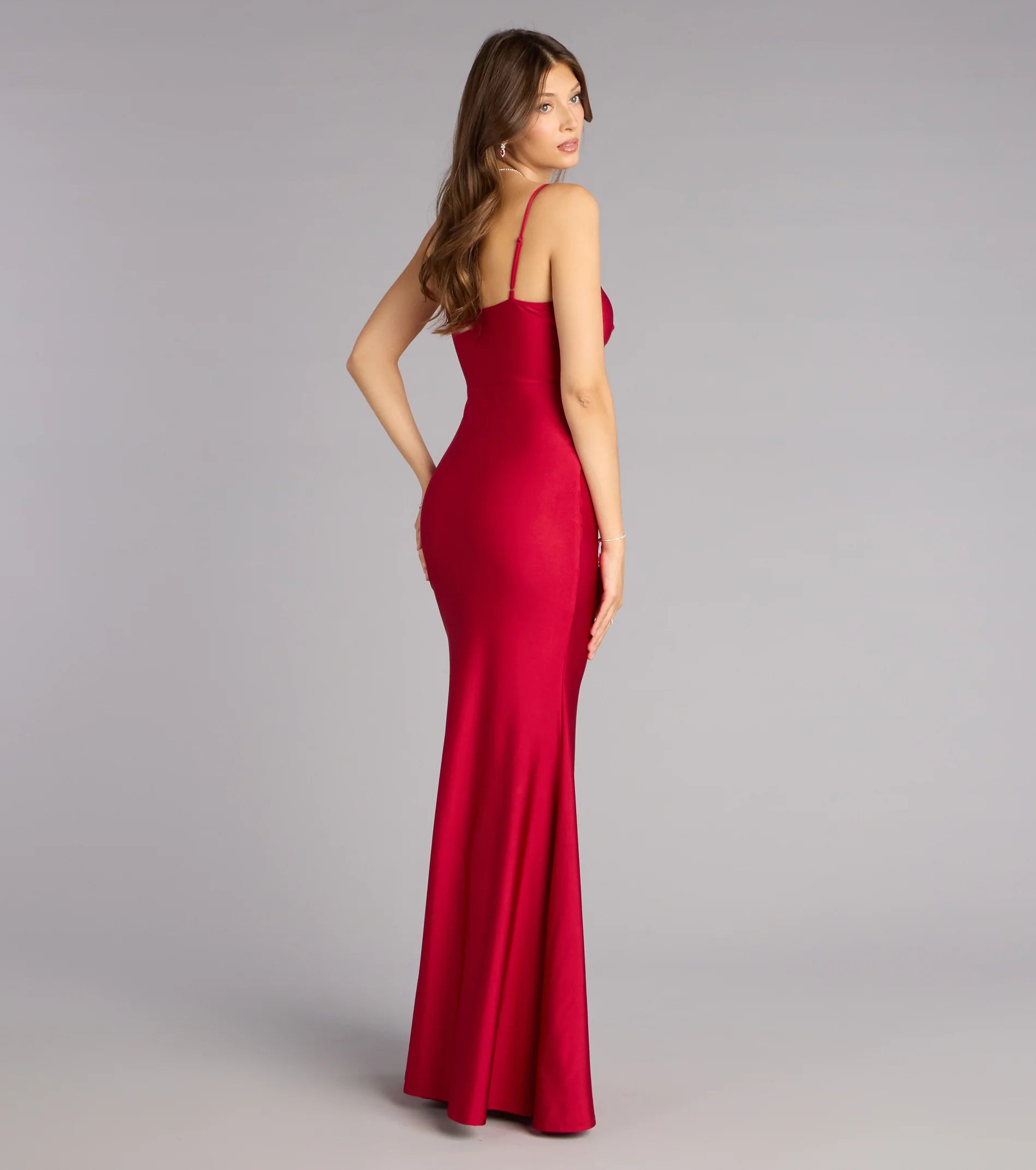 Effortless and undeniably chic, the Tricia plunge gown turns heads with a sleek silhouette and daring thigh-high slit. Designed to elongate and flatter, it’s your perfect plus-one for black-tie events, galas, and every moment that calls for pure glamour.