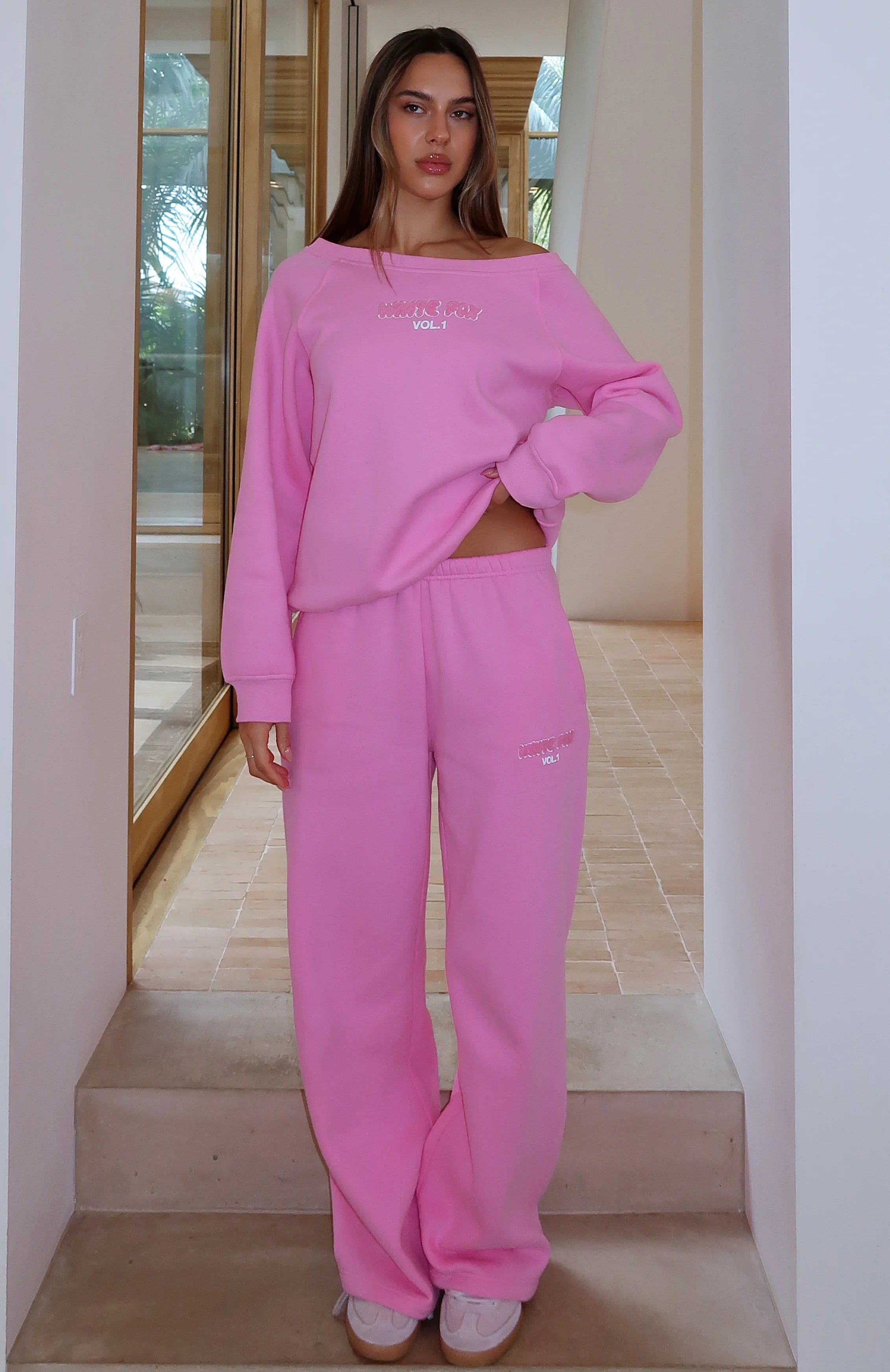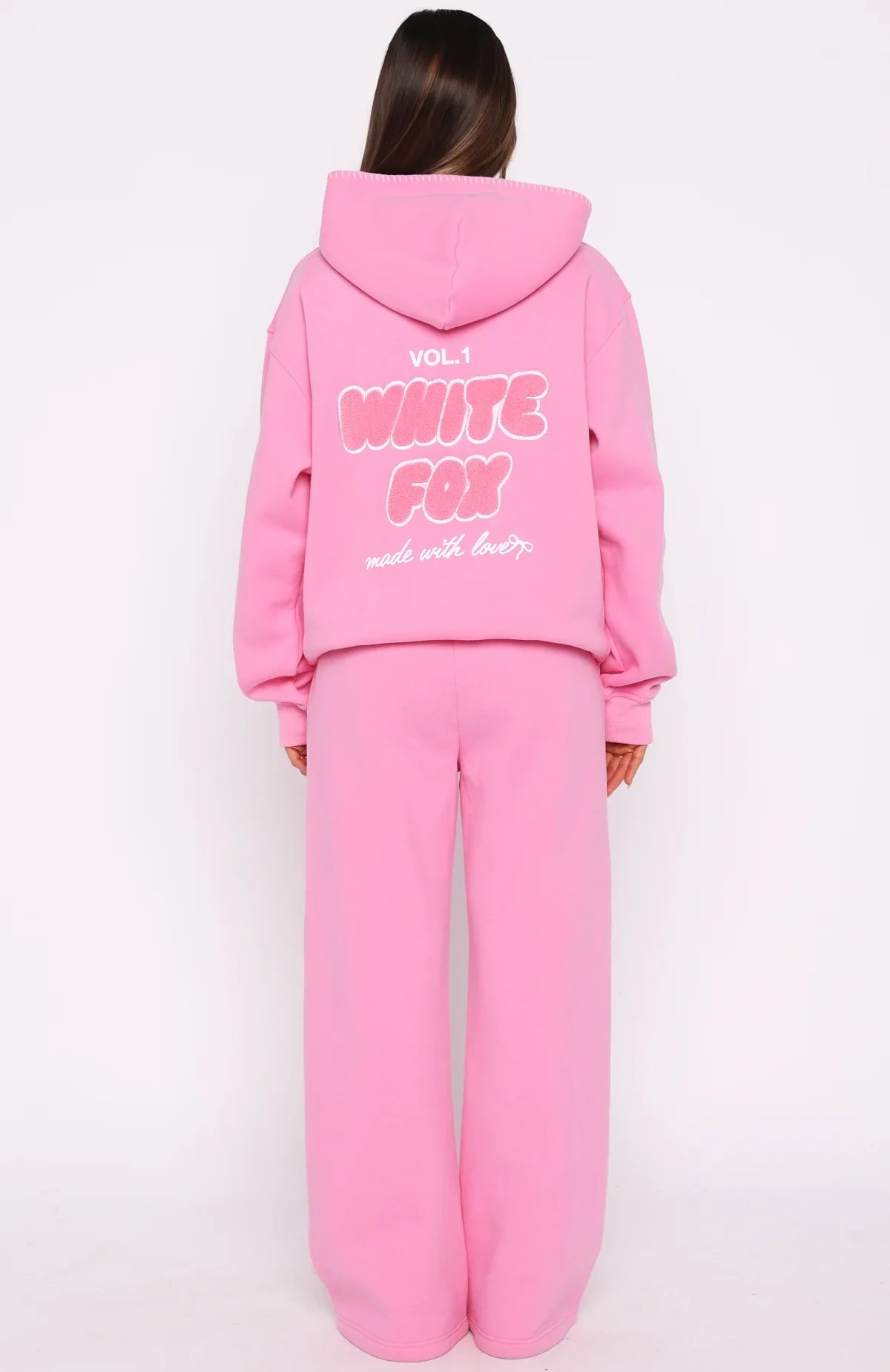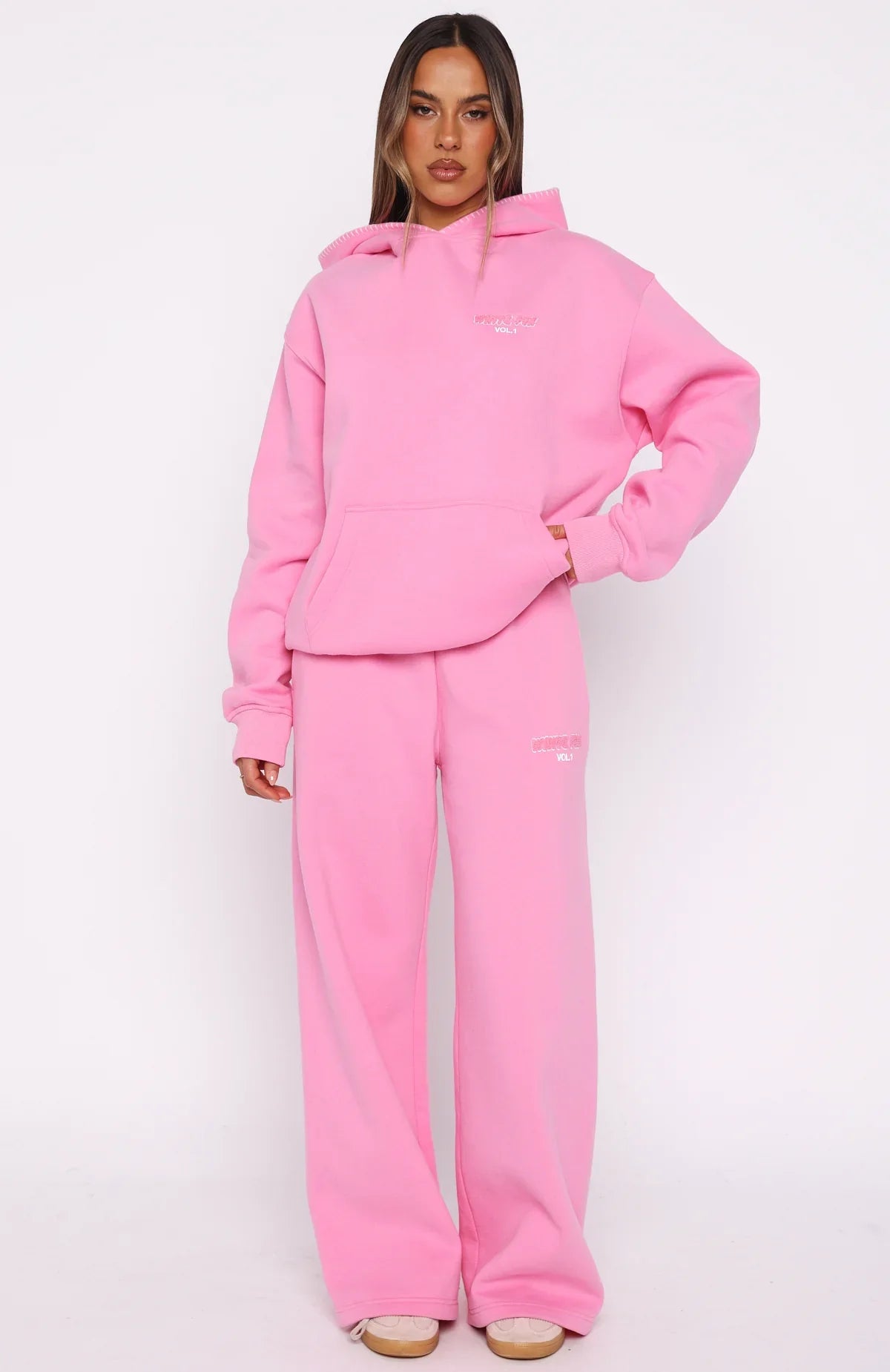Comfort is an attitude, and this set embodies it. The Vol. 1 Wide Leg Sweatpants in Bubblegum are designed with a thin elasticated waistband featuring an internal drawstring tie, side pockets, and a wide-leg silhouette. The White Fox woven text at the side adds a signature touch, while the unlined fleece interior ensures a cosy feel. Pair with the matching Vol. 1 Off Shoulder Sweater Bubblegum or Vol. 1 Oversized Hoodie Bubblegum.